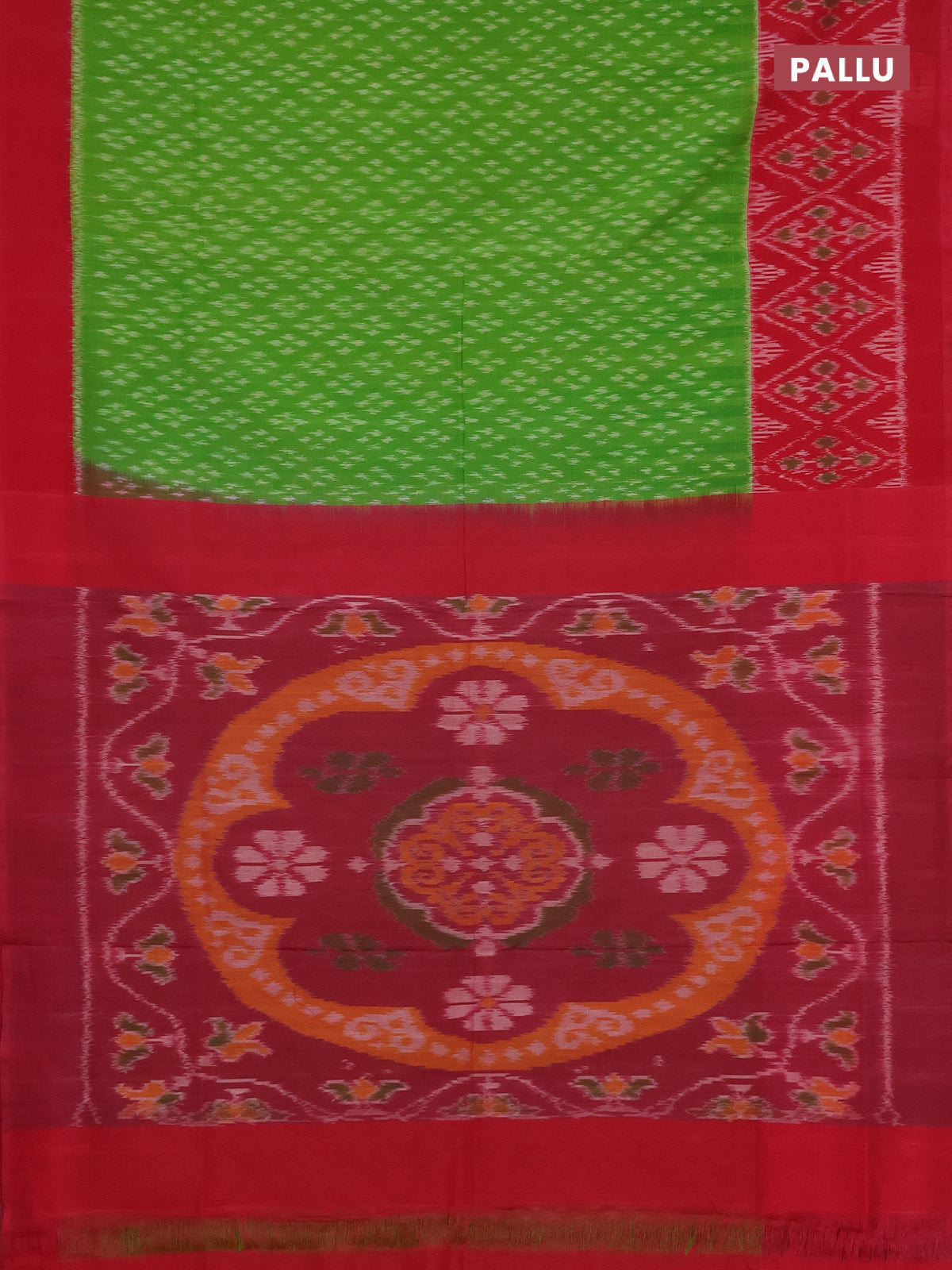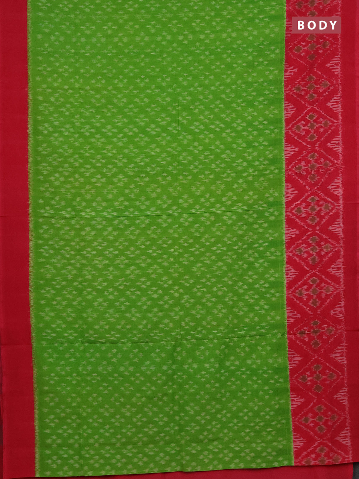 Ikat cotton saree light green and pink with allover ikat weaves and long ikat style border
