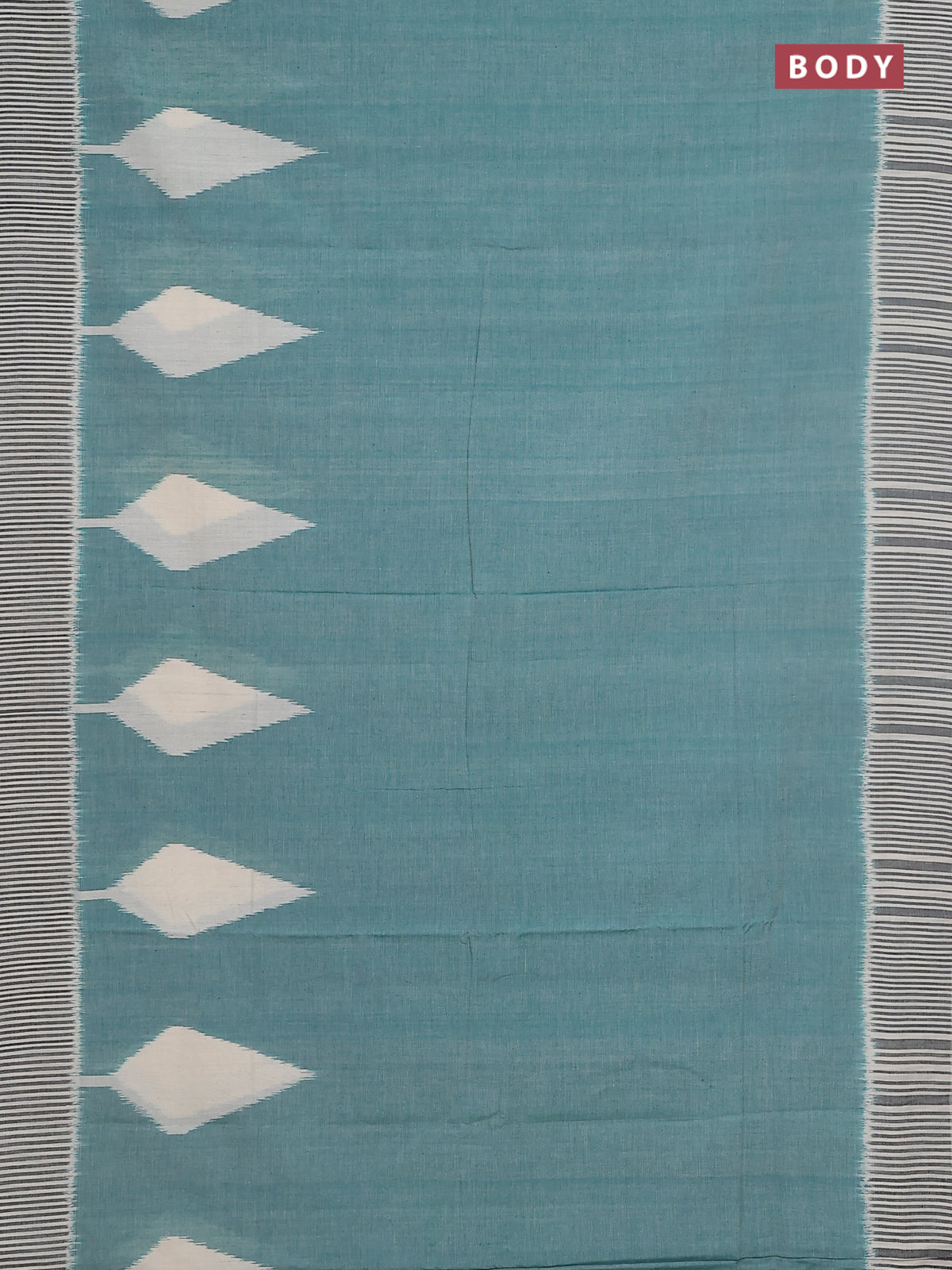 Ikat cotton saree teal green and cream with plain body and simple border