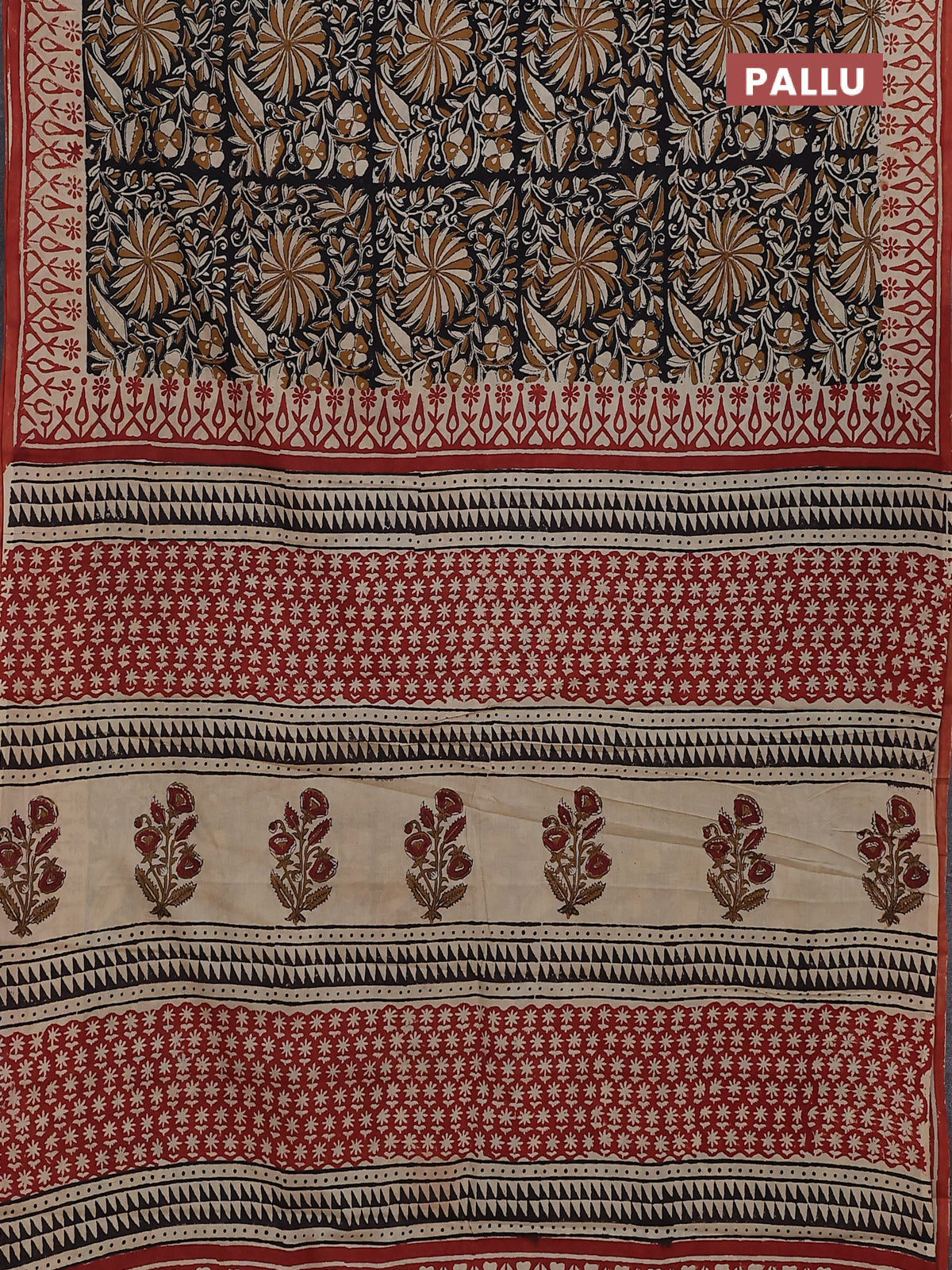 Jaipur cotton saree black and beige rust shade with allover kalamkari prints and printed border