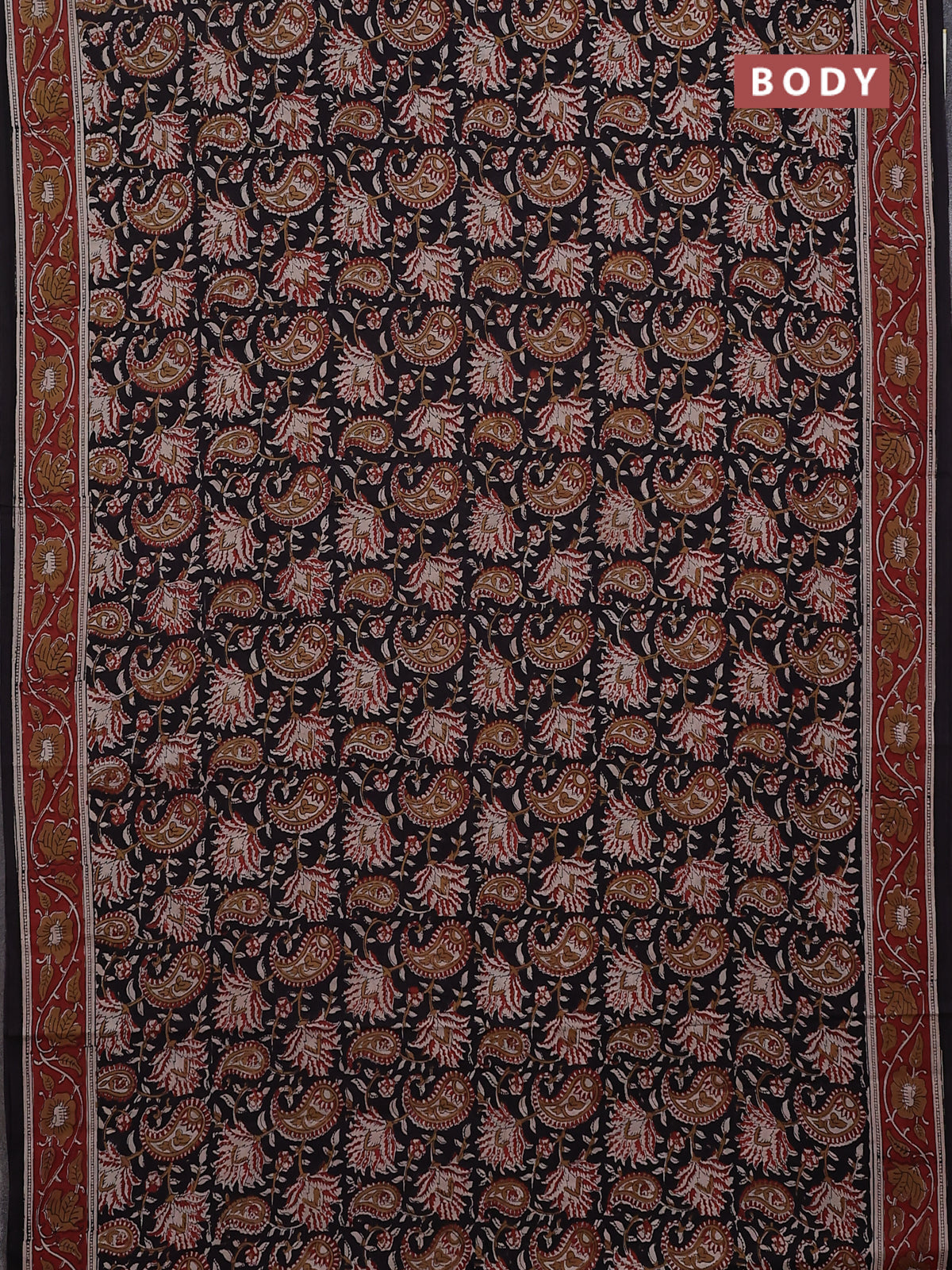 Jaipur cotton saree black and maroon with allover kalamkari prints and printed border