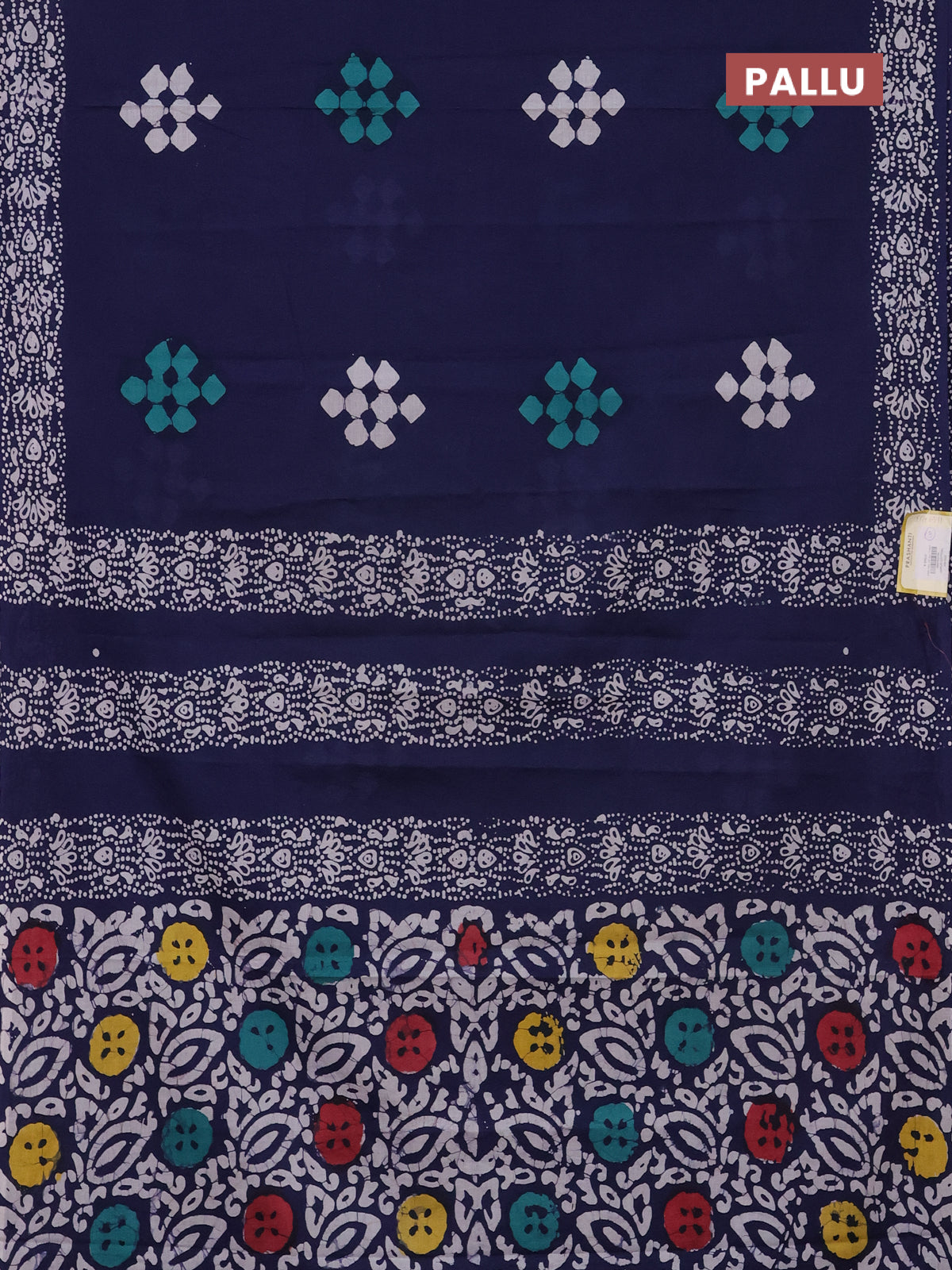 Jaipur cotton saree navy blue and white with batik prints and printed border