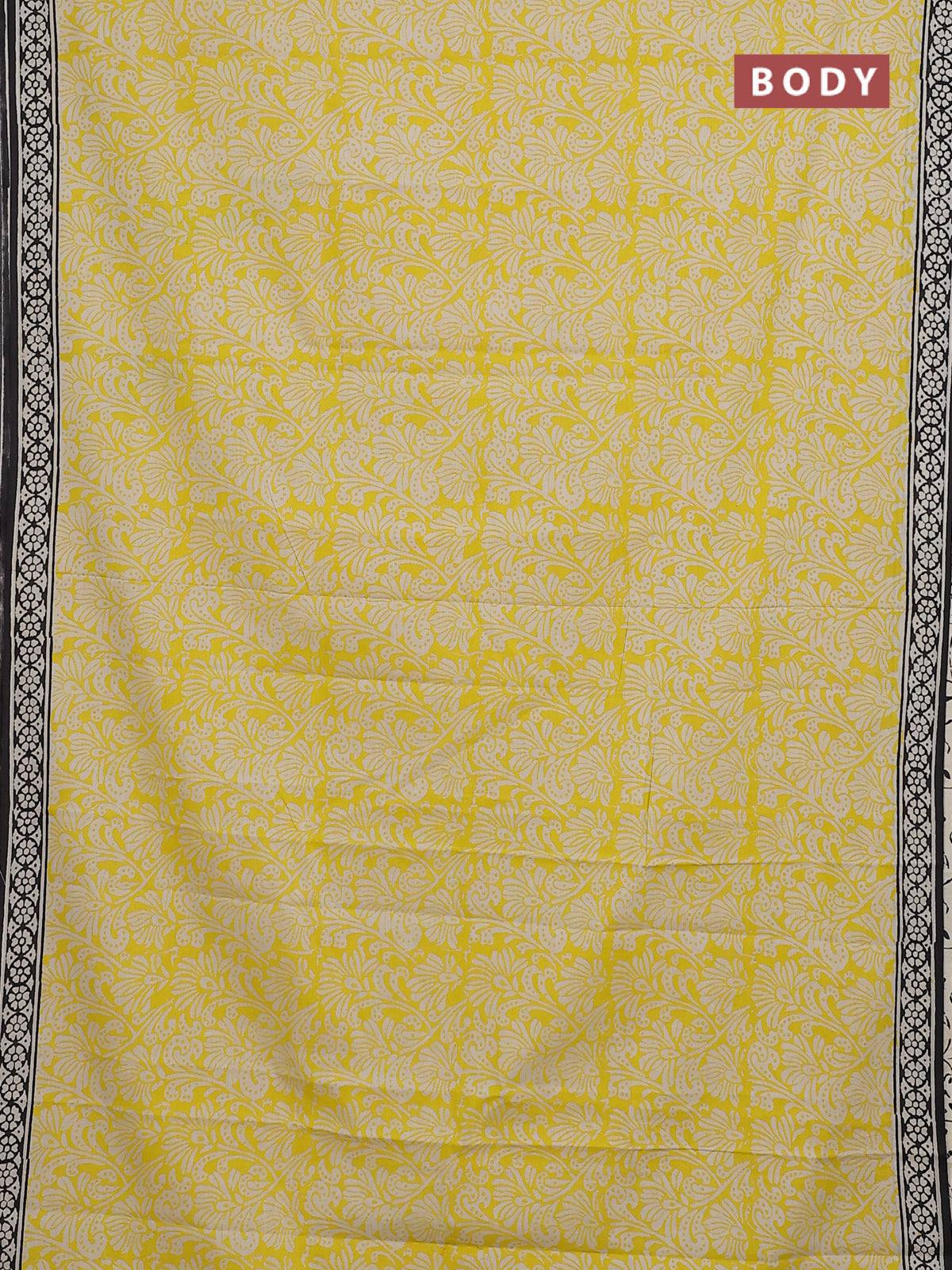 Jaipur cotton saree yellow and black with allover prints and printed border