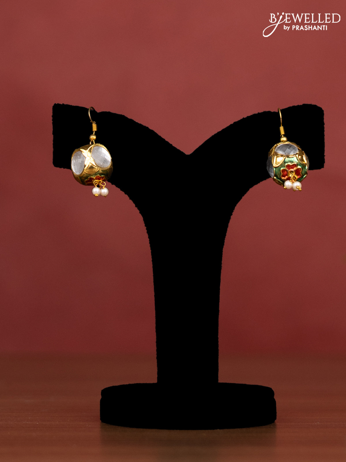 Jaipur crystal beaded with cz and meenakari design and with earrings