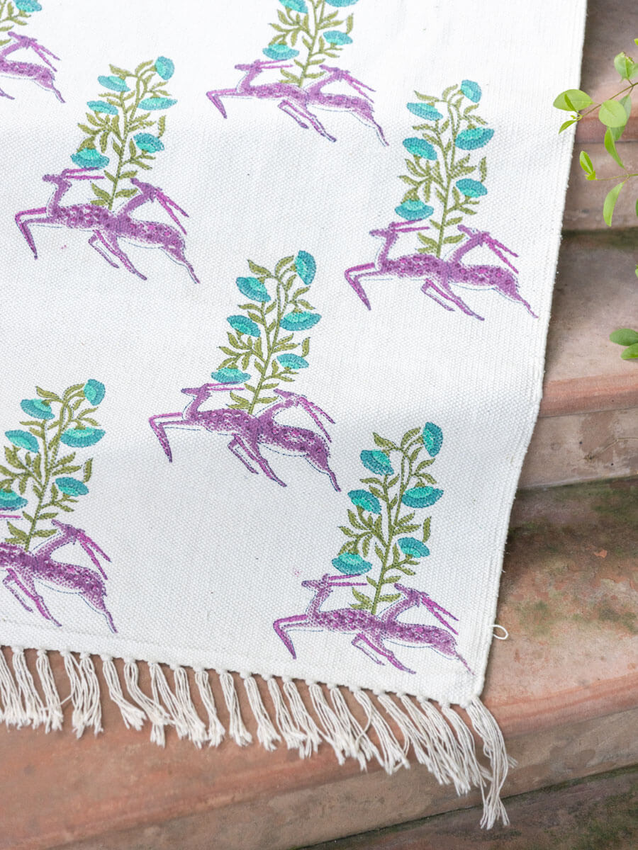 The rug shown in the photo is 4*6 ft. Number of motifs may vary depending on the size of the rug.