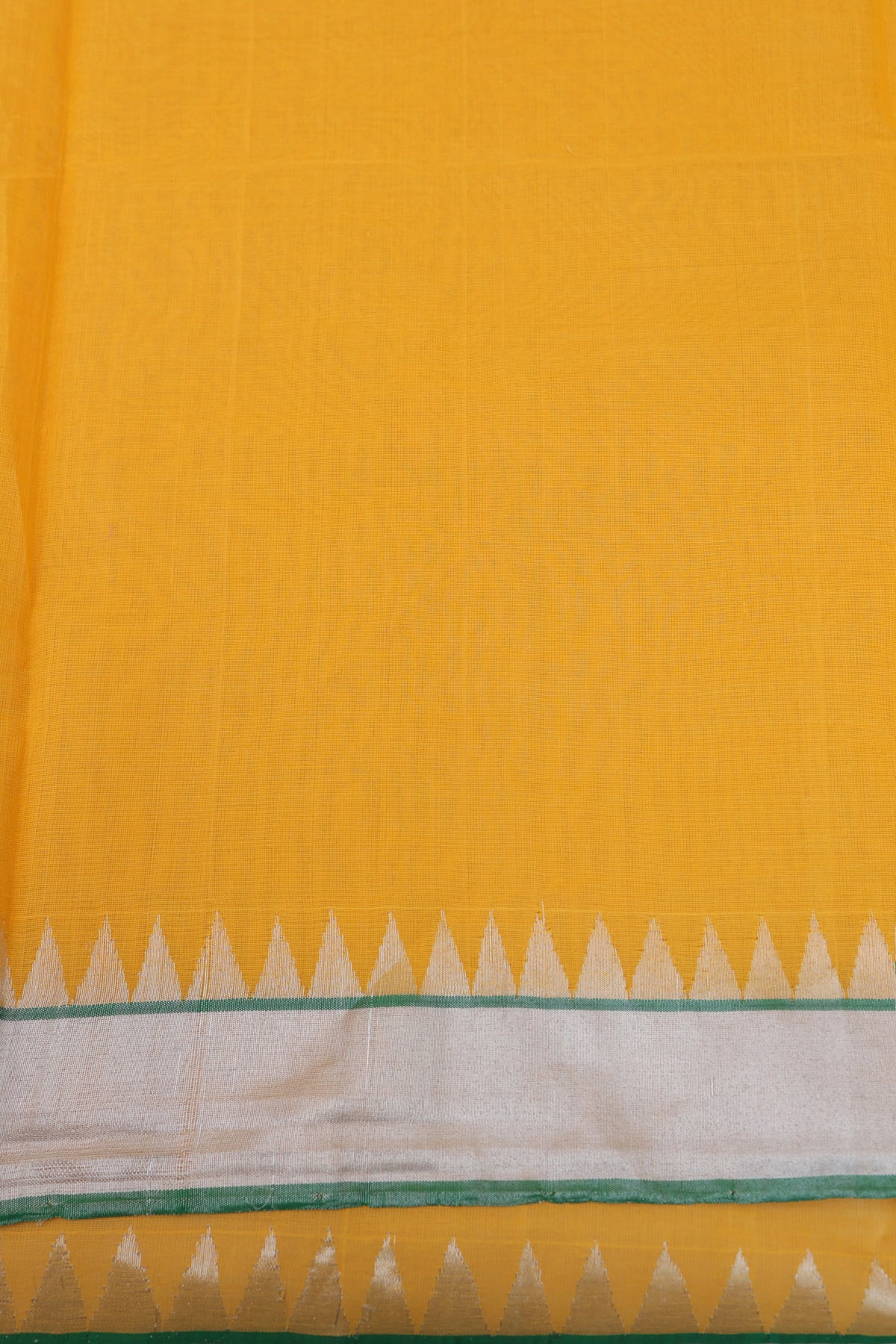 Ignite the allure of sophistication wearing our Khaadi Cotton Yellow Saree, perfect for wedding and festive celebrations, exuding sublime beauty. The plain body sets a serene foundation, complemented by the splendor of the kaddi border, adding traditional allure. Adorned with delicate florals, the pallu enhances the sublime grace of this ensemble. Paired with a self with border blouse, this saree ensures you radiate splendiferous charm on your special day.
