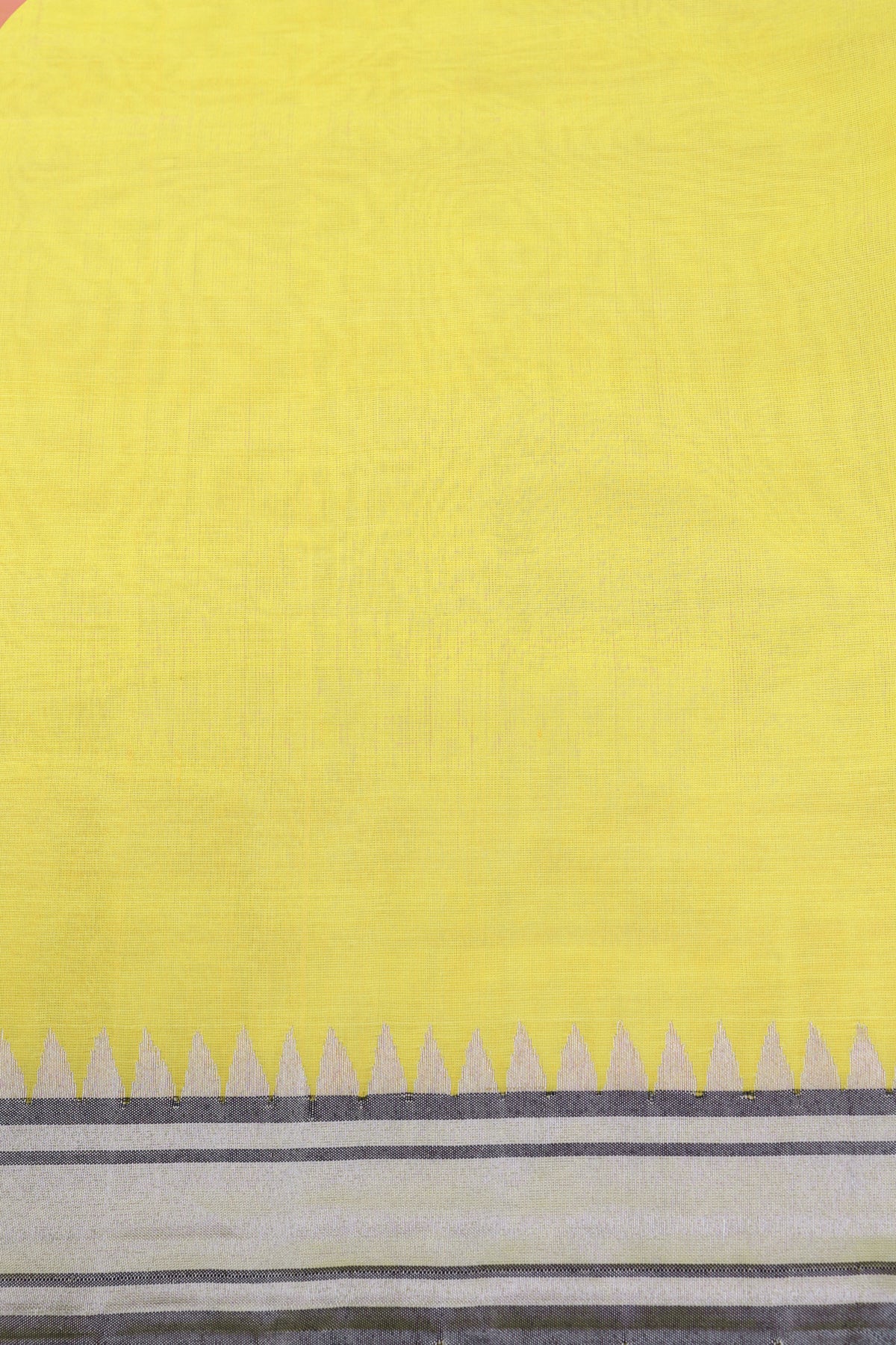 Make a statement of sophistication in our Khaadi Cotton Yellow Saree, perfect for wedding and festive celebrations, showcasing intricate allure. Adorned with delicate floral buttis, it exudes timeless charm. The kaddi border adds a touch of traditional allure, leading gracefully into the pallu adorned with florals and birds. Paired with a self with border blouse, this ensemble ensures you captivate with intricate beauty on your special day.