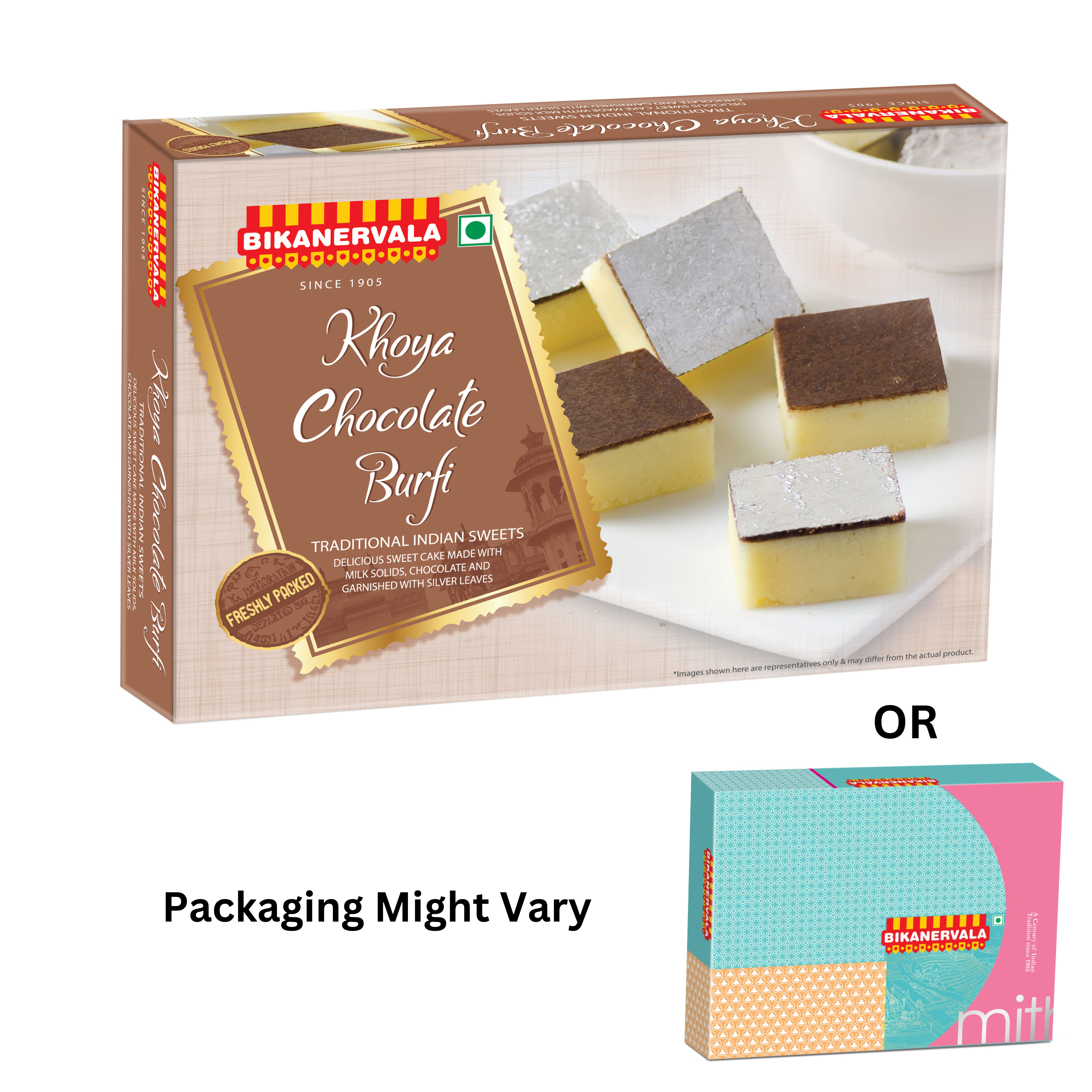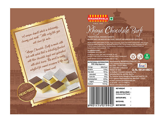 Delicious Sweet Cake made with milk solids, chocolate and garnished with silver leaves