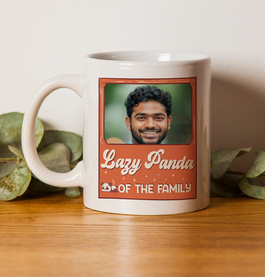 Every family has a couch potato whose only aim in life is to relax! Here's a mug made for the lazy panda of the house. And the best part? You can add their photo to the mug to make it even more special.