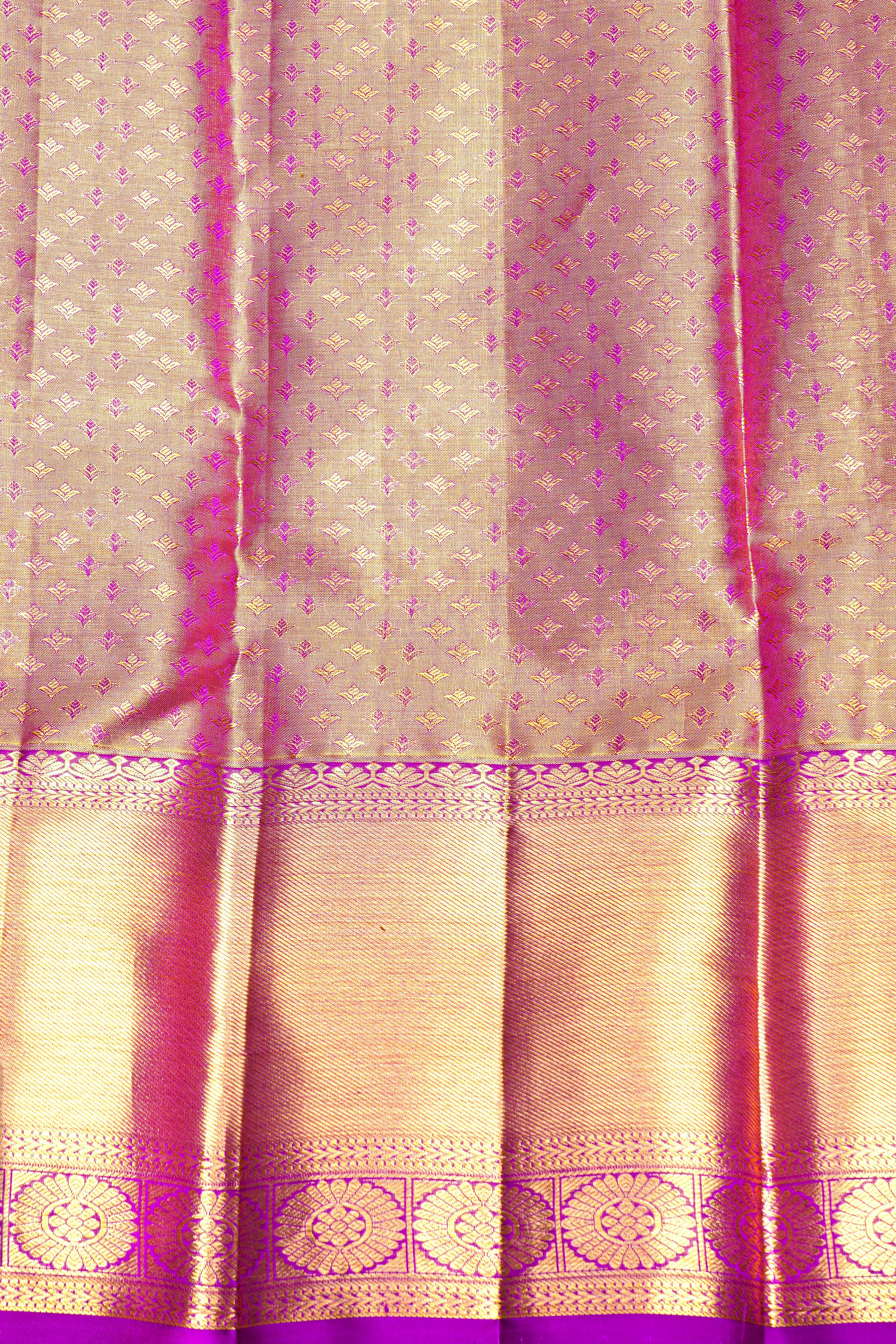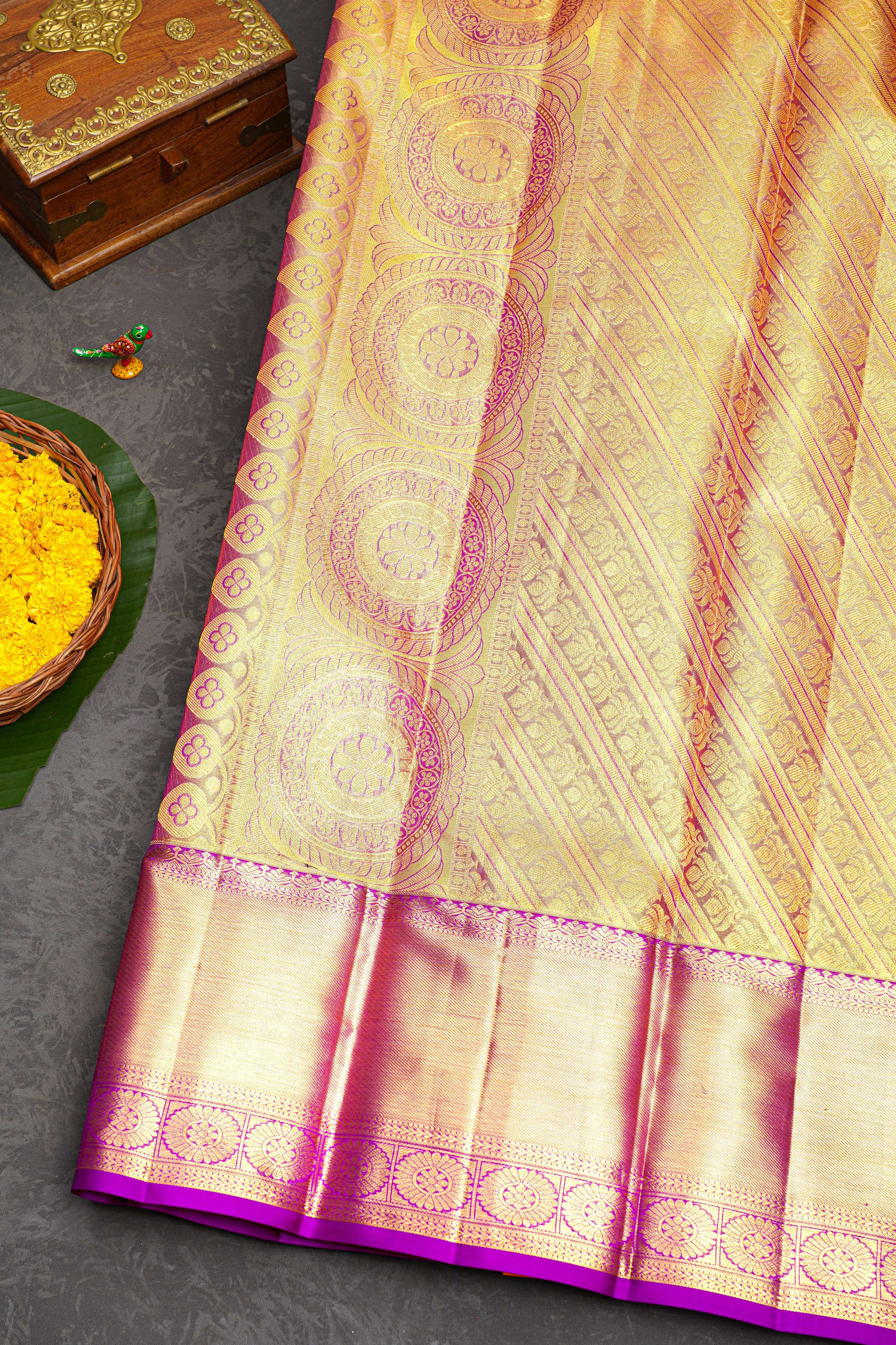 LEMON YELLOW and PURPLE FLORAL JAAL SILK Saree with KANCHIPURAM