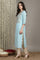 Light Blue Embroidered Mirror work Straight Kurta