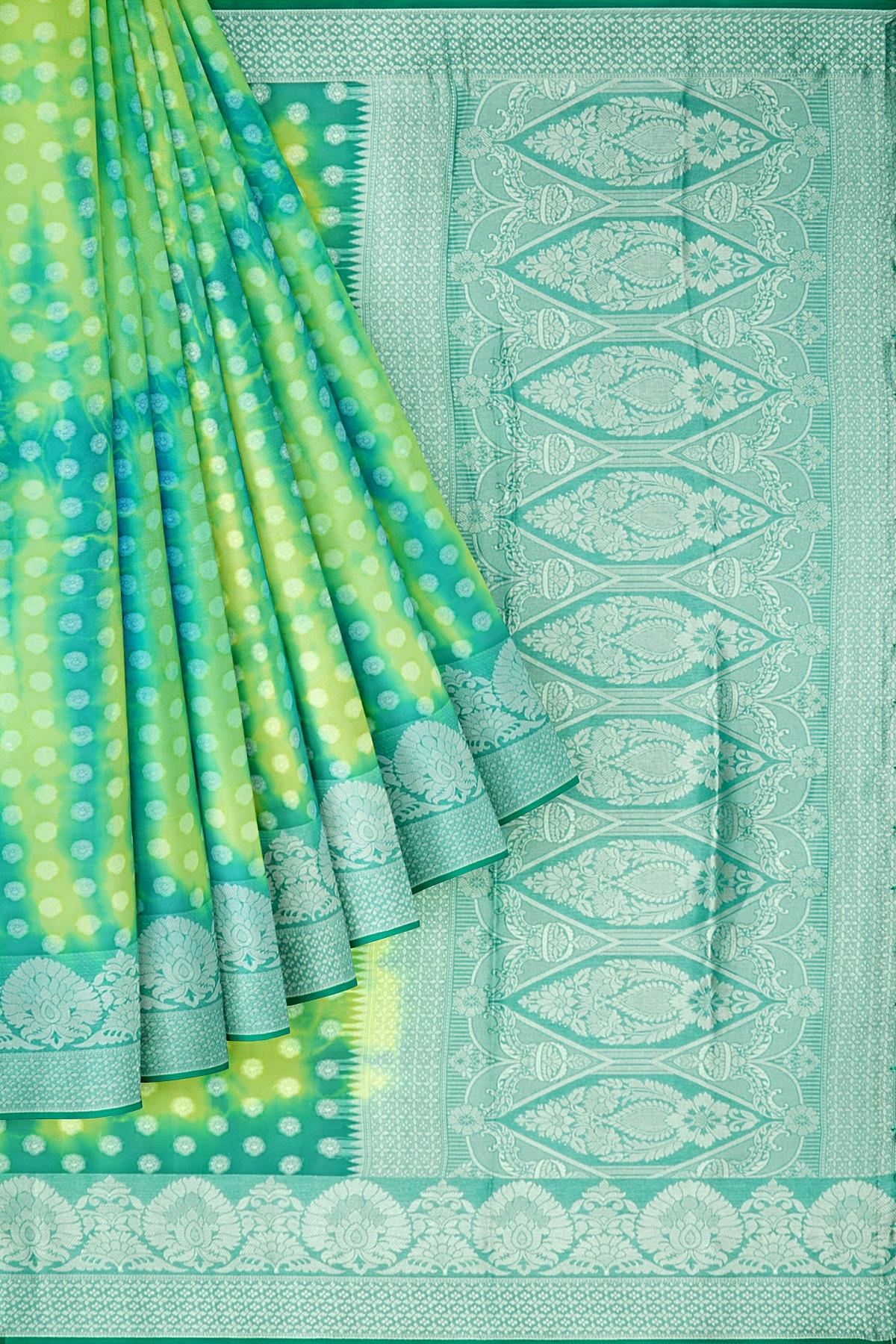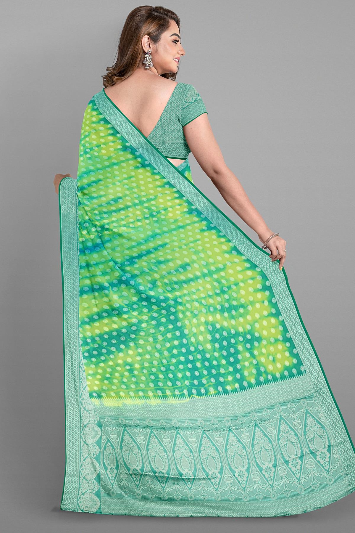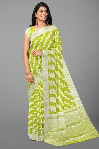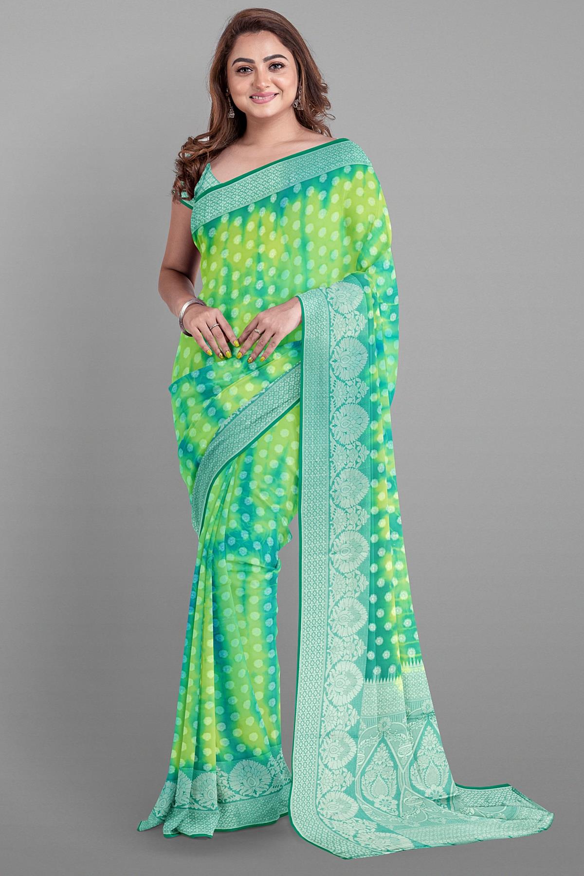 LIGHT GREEN and GREEN BUTTIS CHIFFON Saree with BANARASI FANCY