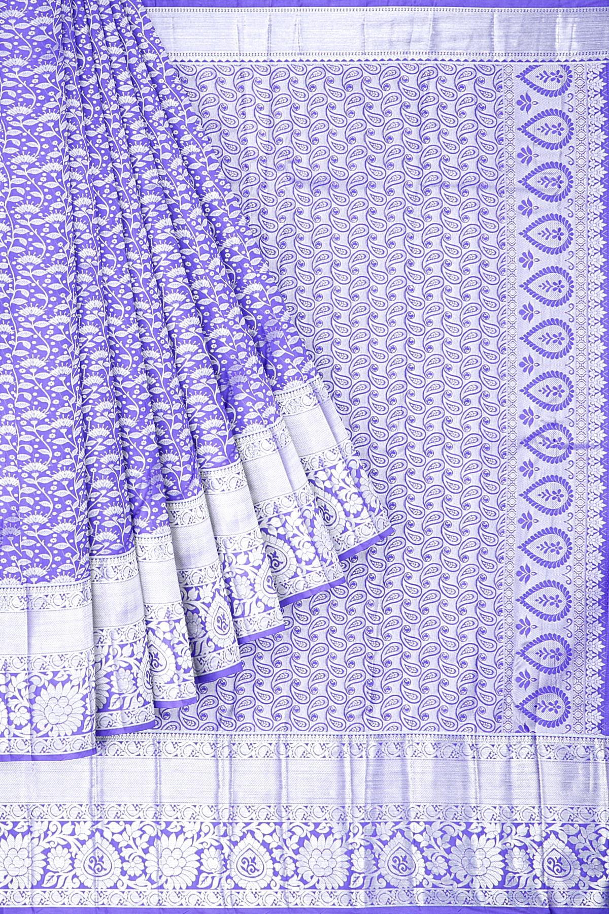 LIGHT PURPLE and SILVER FLORAL JAAL SILK BLEND Saree with SEMI PATTU