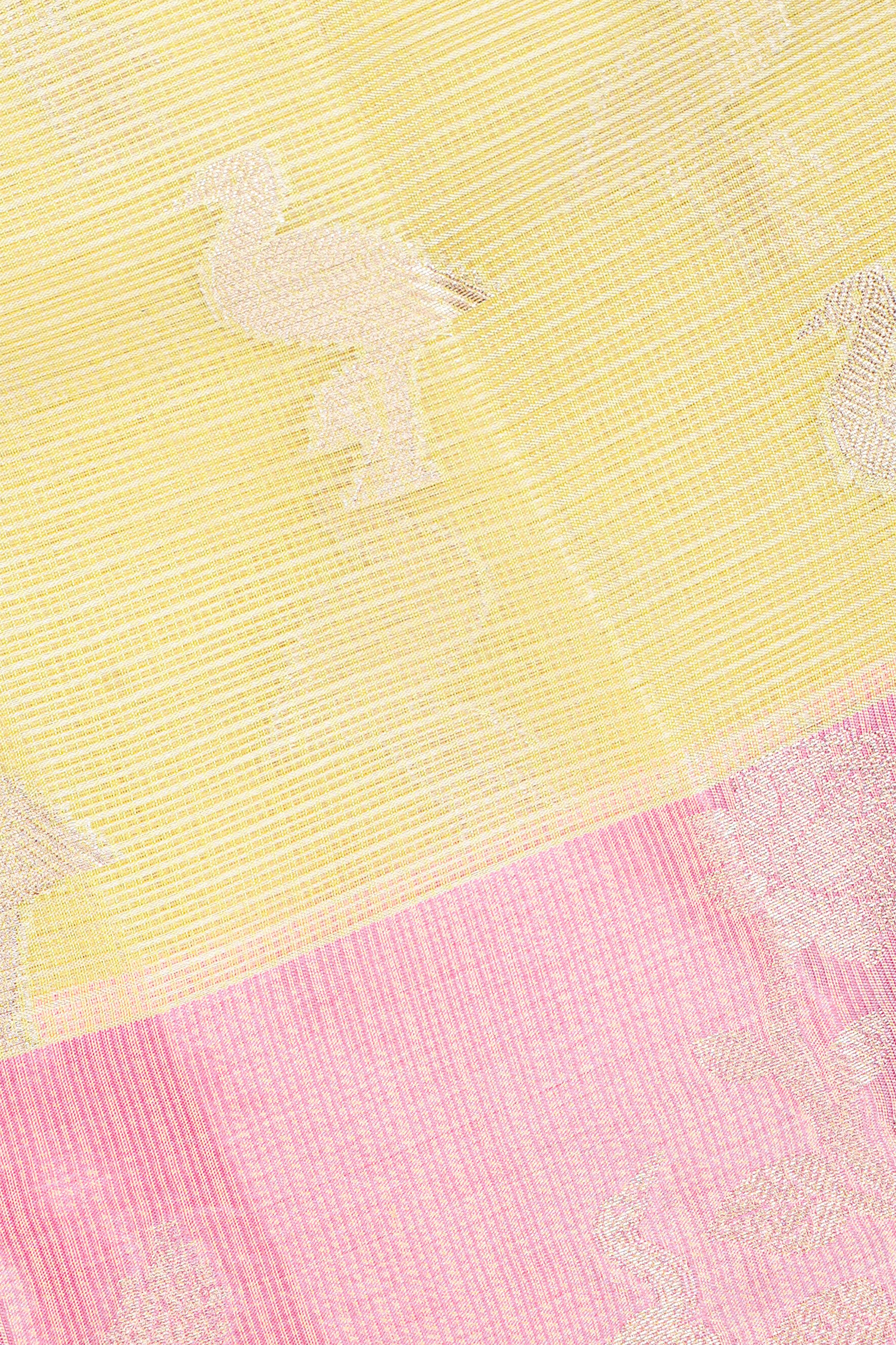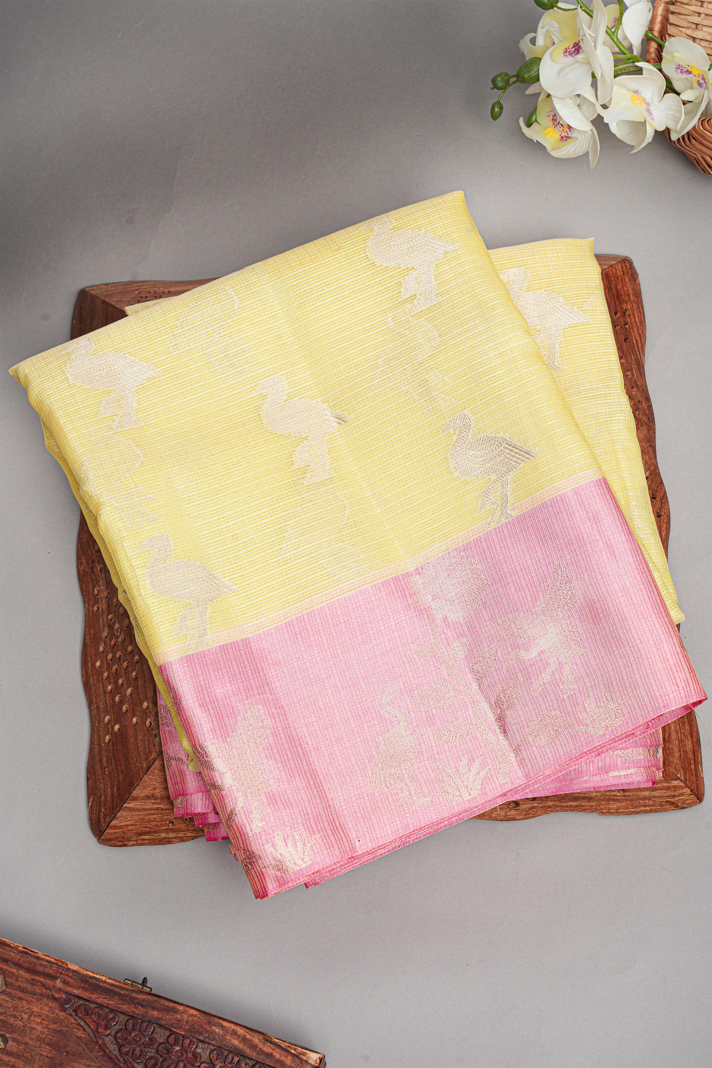 LIGHT YELLOW and LIGHT PINK FIGURE BUTTIES KOTA Saree with FANCY