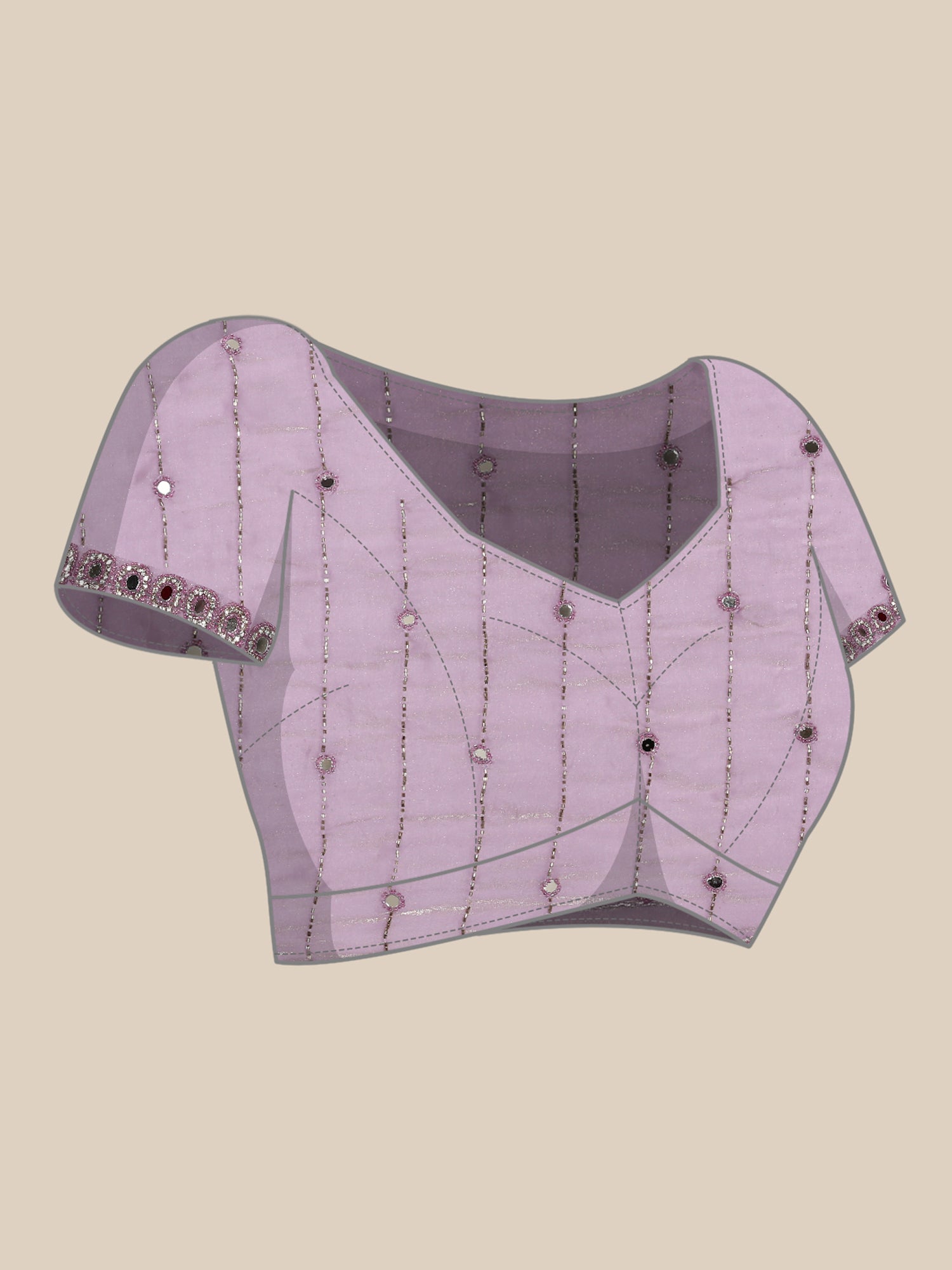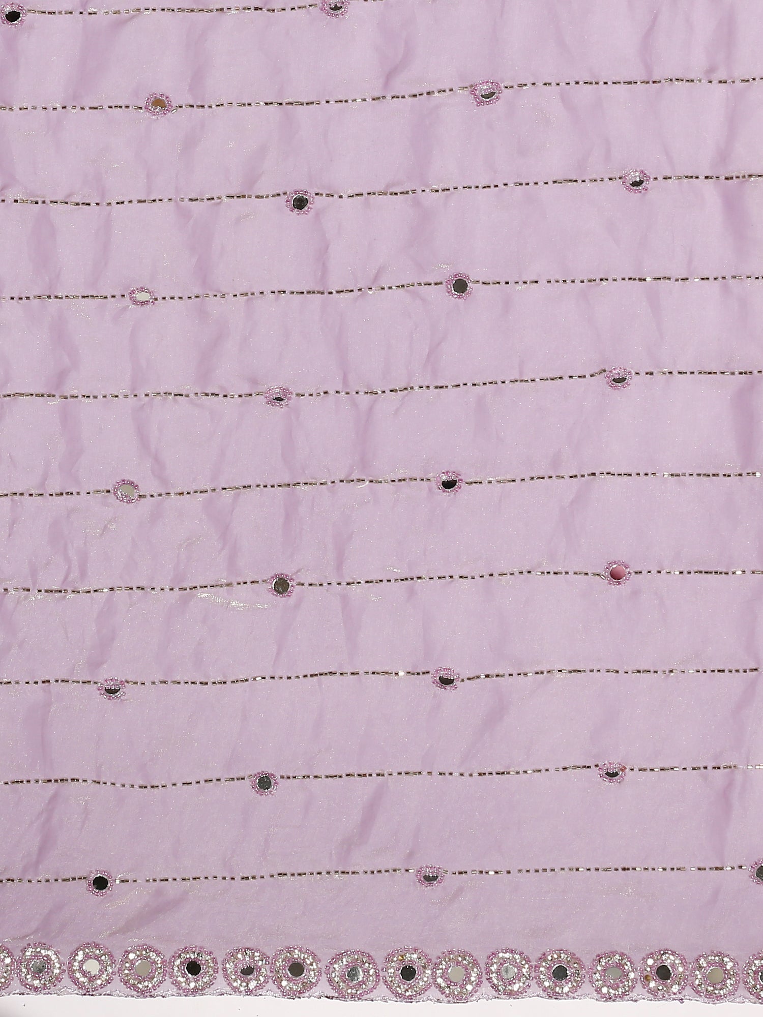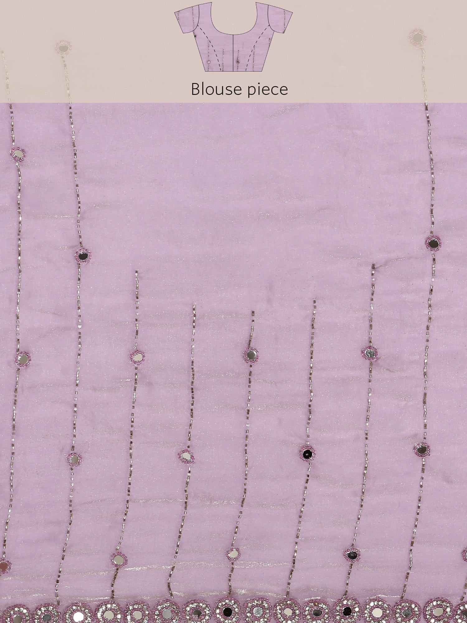 Lilac Jimmy tissue saree with mirror work hand embroidery