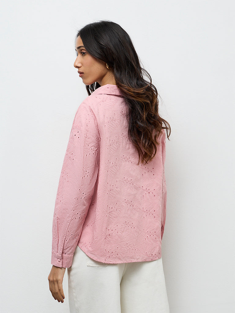 LOV Dusty Pink Schiffli Embroidered Cotton Shirt