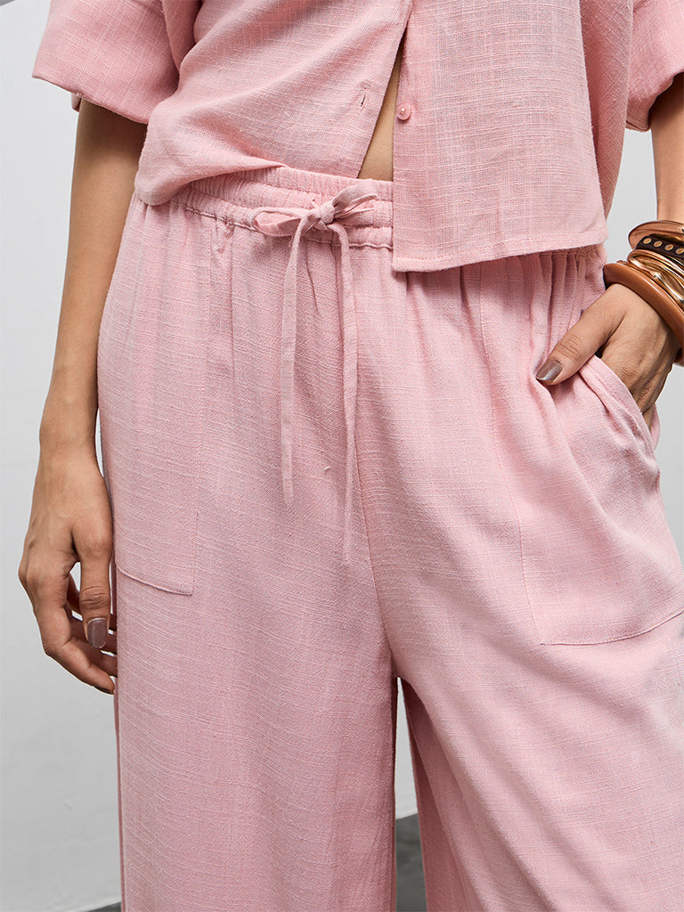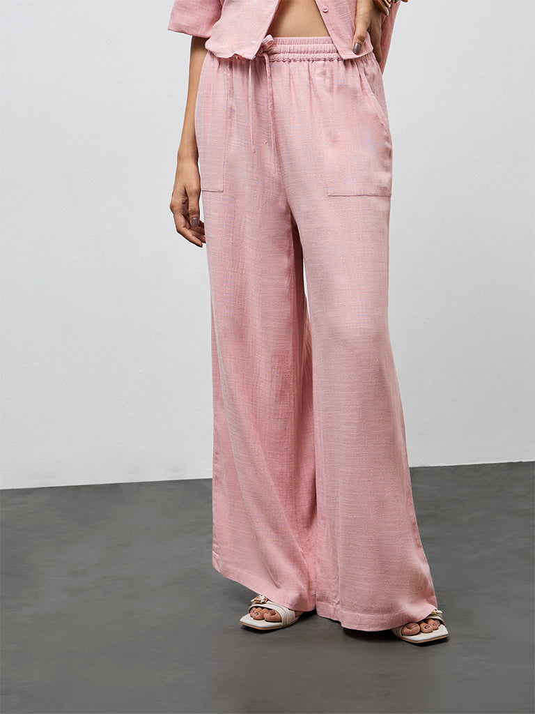 LOV Dusty Pink Solid High-Rise Pants