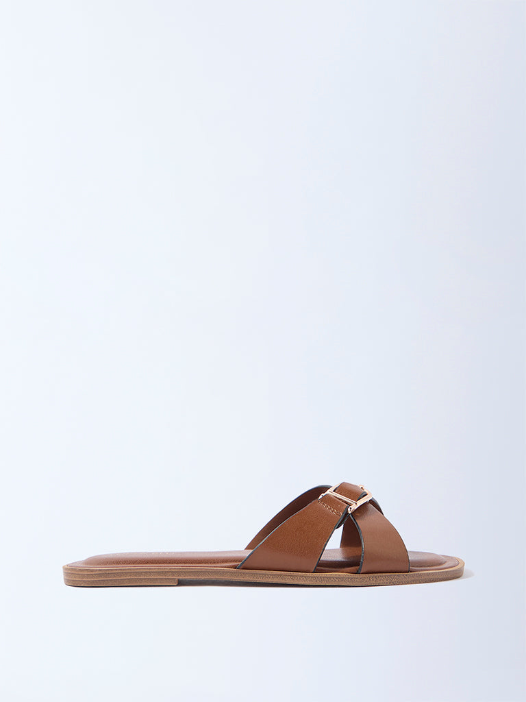 LUNA BLU Brown Criss-Cross Detailed Slides- Exclusive
