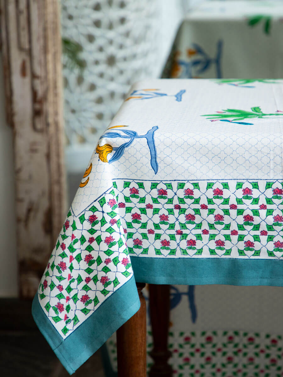 Crafted in 100% cotton, the fabric used is firm, so it sits well on the table. A contemporary print in traditional hand block technique makes this piece in style of today yet reminiscent of yesterday. Available in two sizes - for 4-seater and 6-8 seater tables.