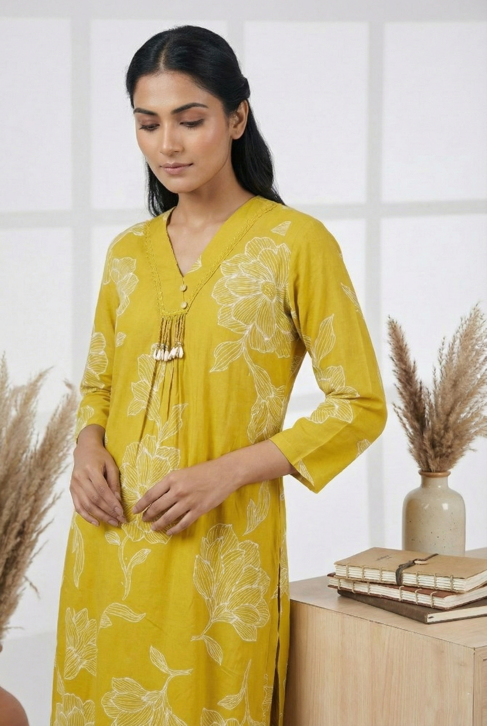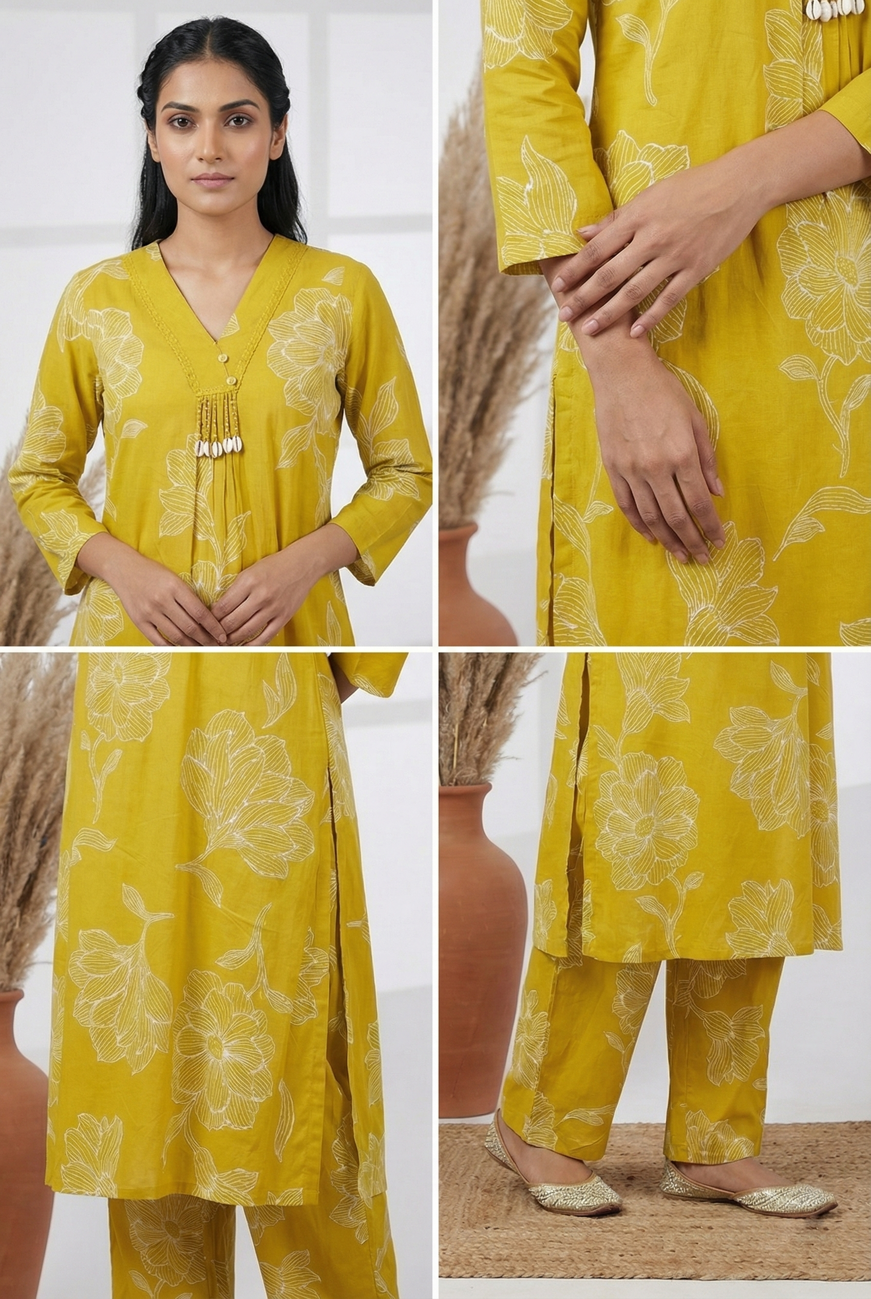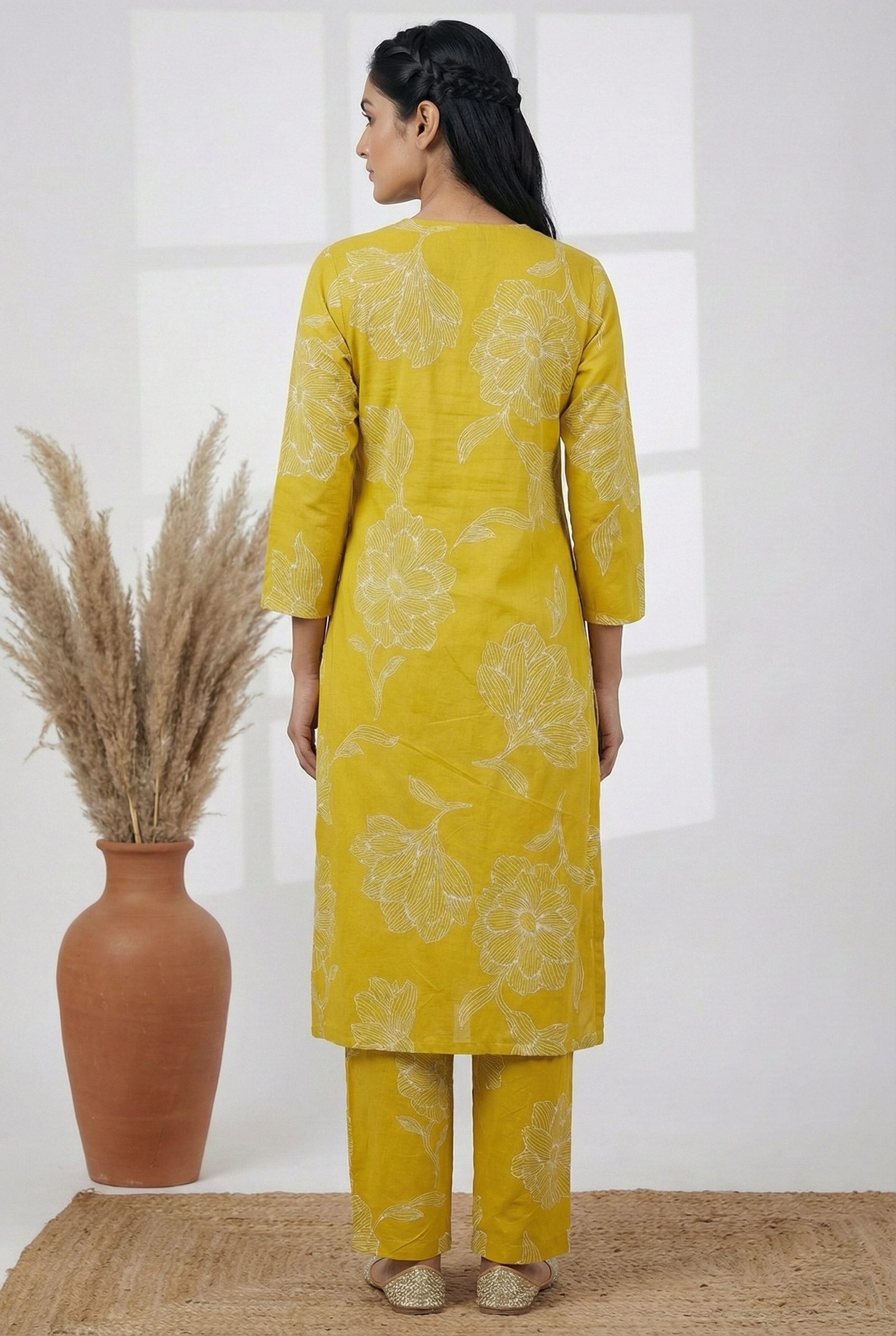 Mehadi Green Rayon Digit Print Two Piece Set Elevate your ethnic wardrobe with this sophisticated two-piece ensemble in rich mehadi green. Crafted from breathable rayon, this set features an intricate digit print that adds contemporary flair to traditional styling. The fluid fabric drapes beautifully, ensuring comfort throughout the day while maintaining an elegant silhouette. Perfect for festive occasions, casual gatherings, or everyday wear, this versatile set combines timeless appeal with modern design sensibilities. The coordinated pieces work seamlessly together, offering effortless styling for the discerning wearer seeking quality and aesthetic refinement.