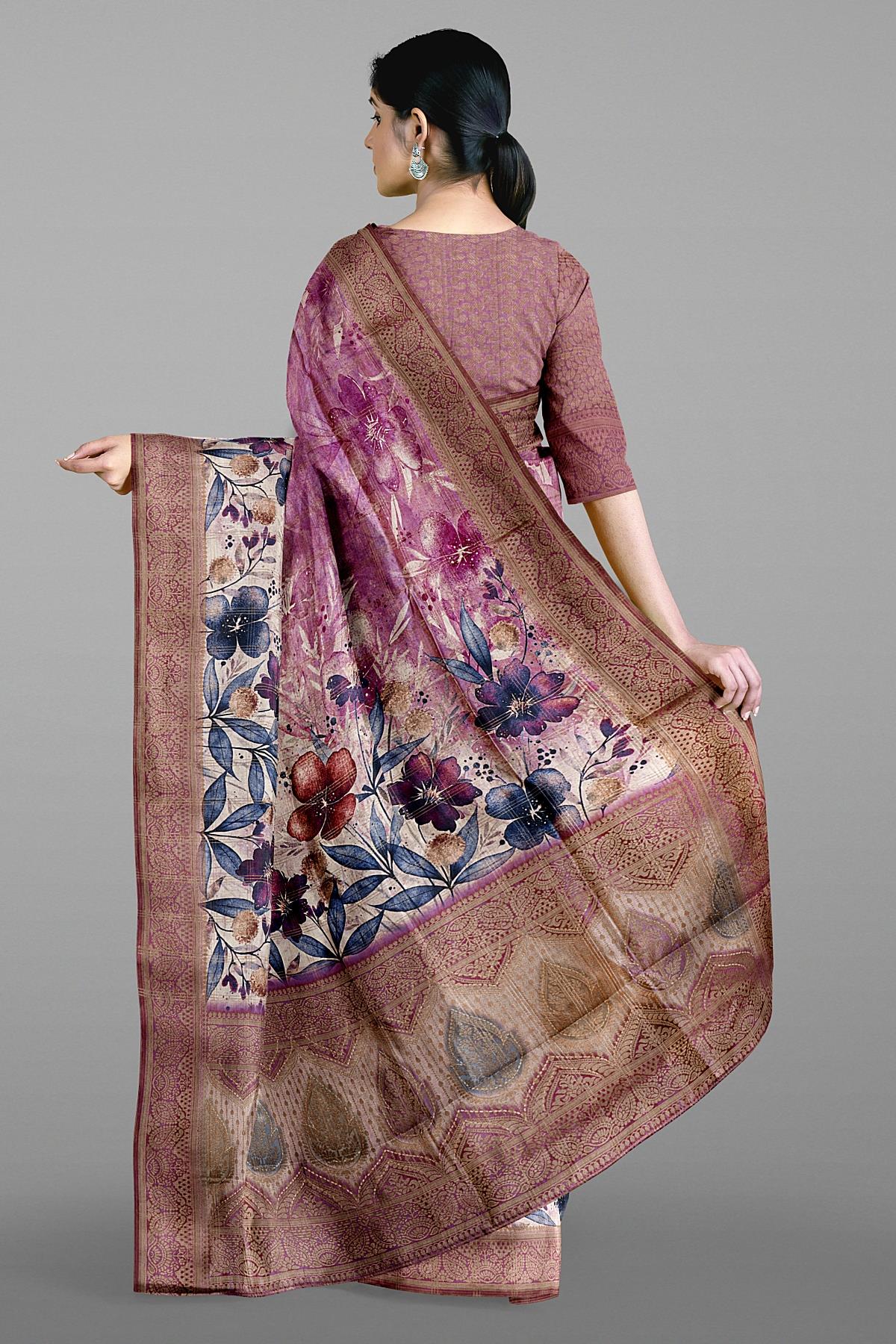 MULTI and PURPLE CHECKS & FLORALS TUSSAR SILK Saree with FANCY