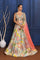 The multicolour embroidered crepe lehenga set with abstract printed blouse and lehenga along with pink organza dupatta for an amazing elegant look.