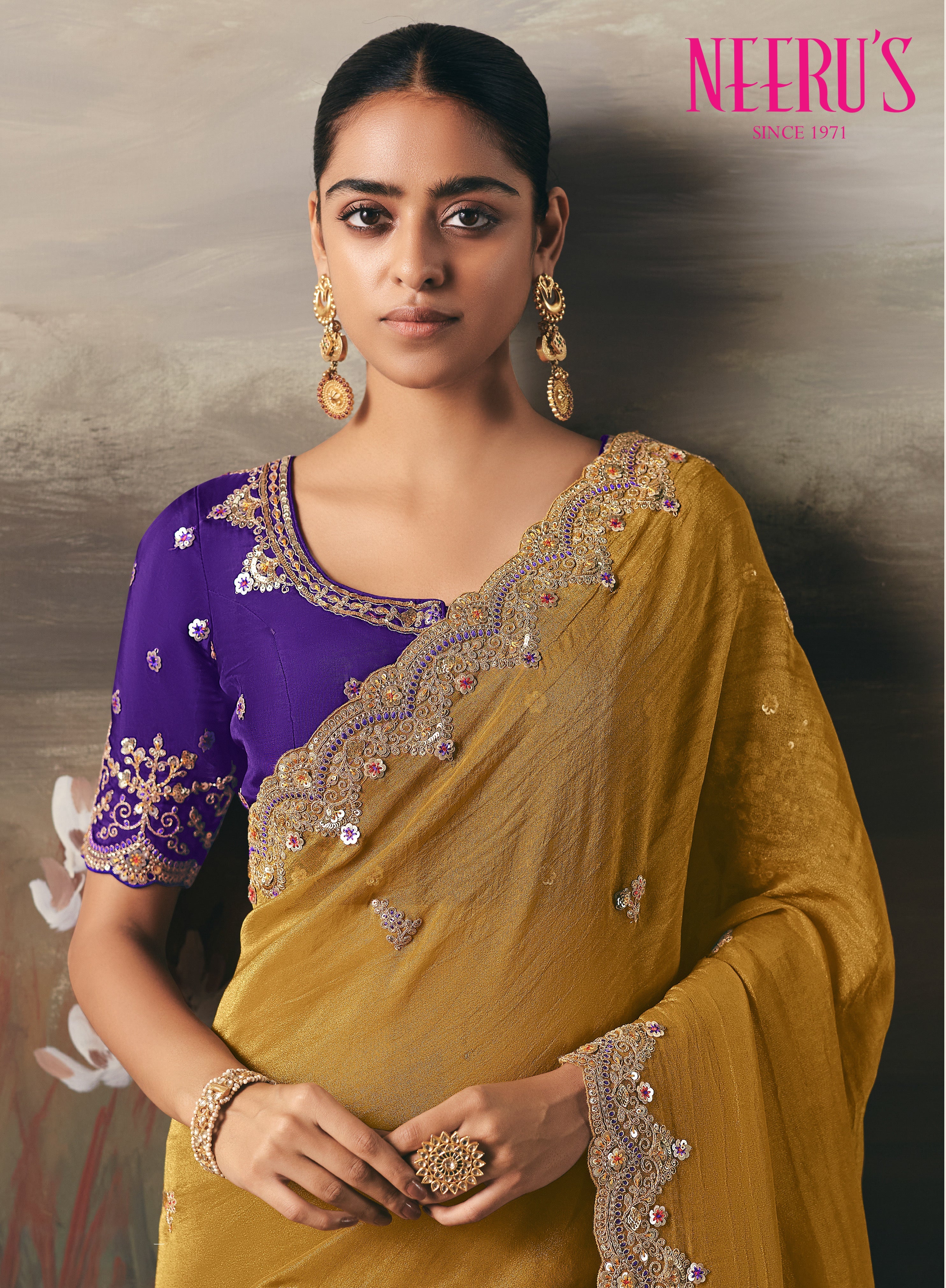 Elevate your ethnic wardrobe with this stunning mustard tissue saree, a masterpiece of traditional craftsmanship. The lightweight tissue fabric drapes beautifully, offering comfort without compromising on elegance. Intricate sequin embellishments and lustrous zari work create a mesmerizing interplay of light and texture, making this saree perfect for weddings, festive celebrations, and special occasions. The rich mustard hue complements a wide range of skin tones while exuding timeless sophistication. Pair with traditional jewelry and a contrasting blouse to complete your look.
