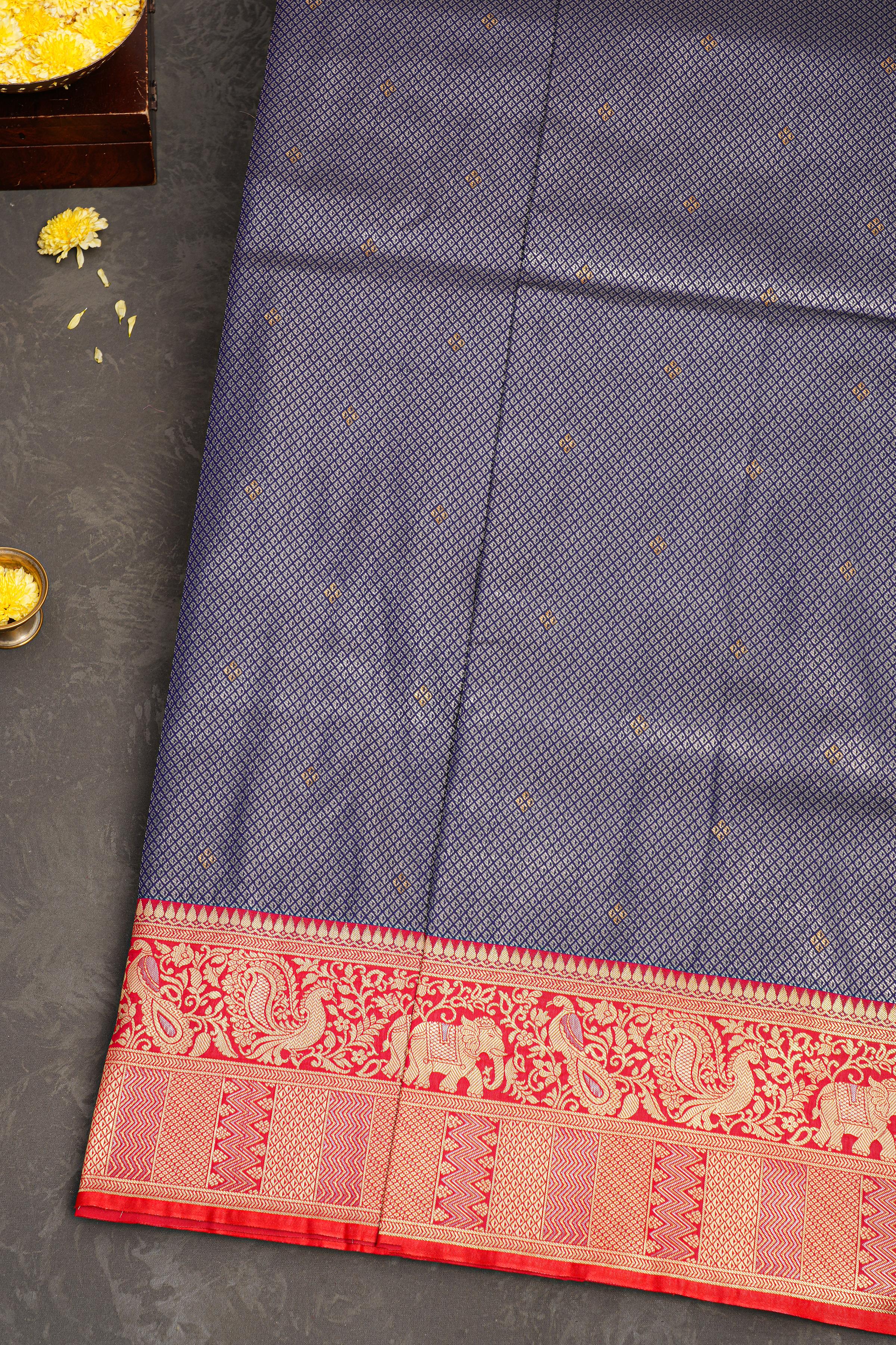 Latest NAVY BLUE BROCADE SILK Saree with CONTRAST ZARI border. This saree comes with CONTRAST WITH BORDER SILK blouse.