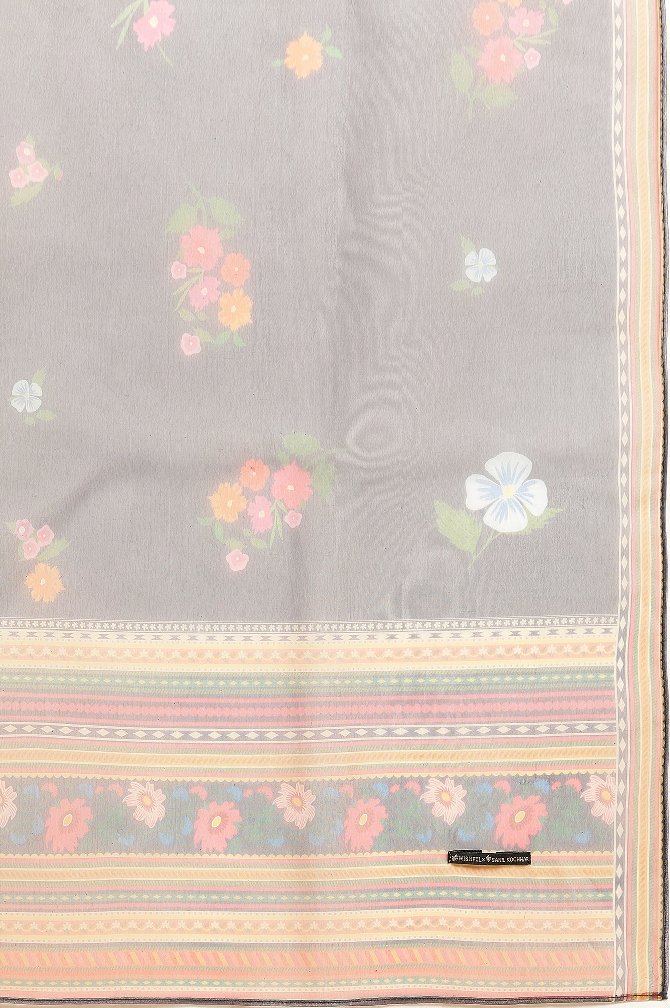 Navy Blue Chanderi Floral Printed Kurta, Pants and Organza Dupatta Set