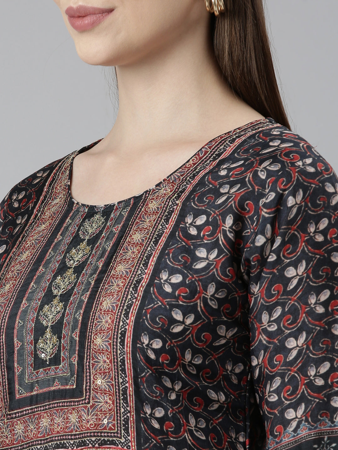 Neeru's Black Regular Straight Floral Readymade Suits