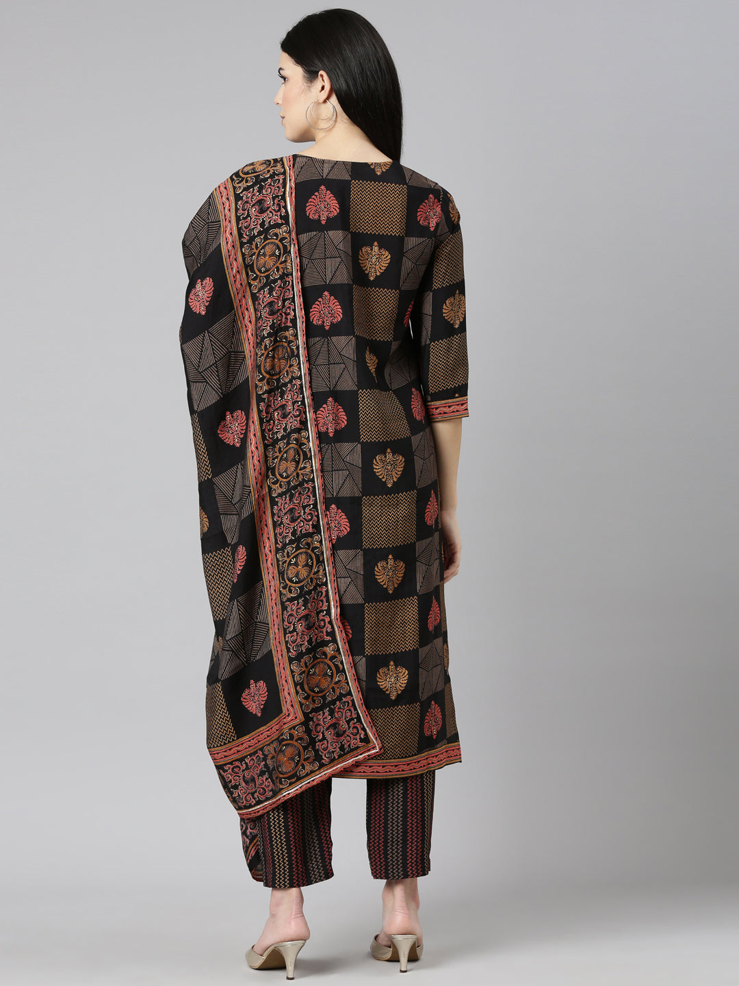 Neeru's Black Regular Straight Printed Readymade Suits