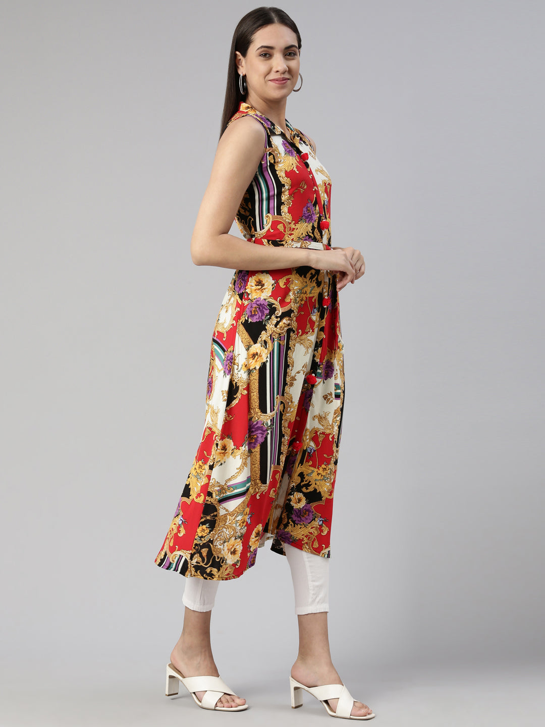 Flaunting A Striking Quirky Print, This A-Line Cotton Silk Kurta From Neeru's Boasts A Luxurious Design That Is Sure To Turn Heads. It Features A Distinctive Shirt Collar, And A Front Slit For An Added Touch Of Style And Femininity. Perfectly Finished With A Flared Hemline, This Sophisticated Piece Will Make A Chic Addition To Any Daily Ensemble.