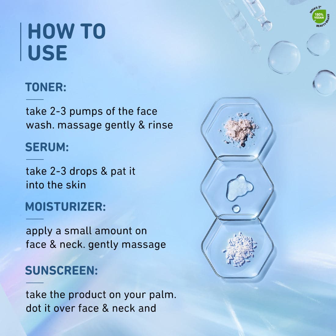 Niacinamide Clear & Bright Skin Combo | With Niacinamide & Rice Water | Toner, Serum, Gel Moisturizer & SPF 50 PA+++ Sunscreen