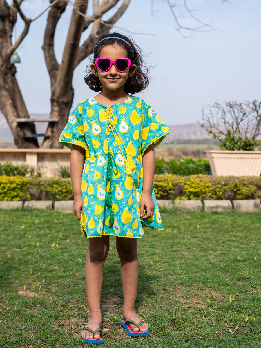 Pear Organic Cotton Block Printed Kaftan for Kids