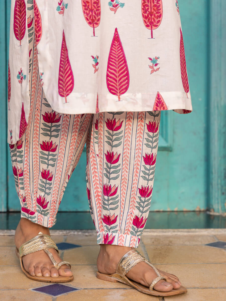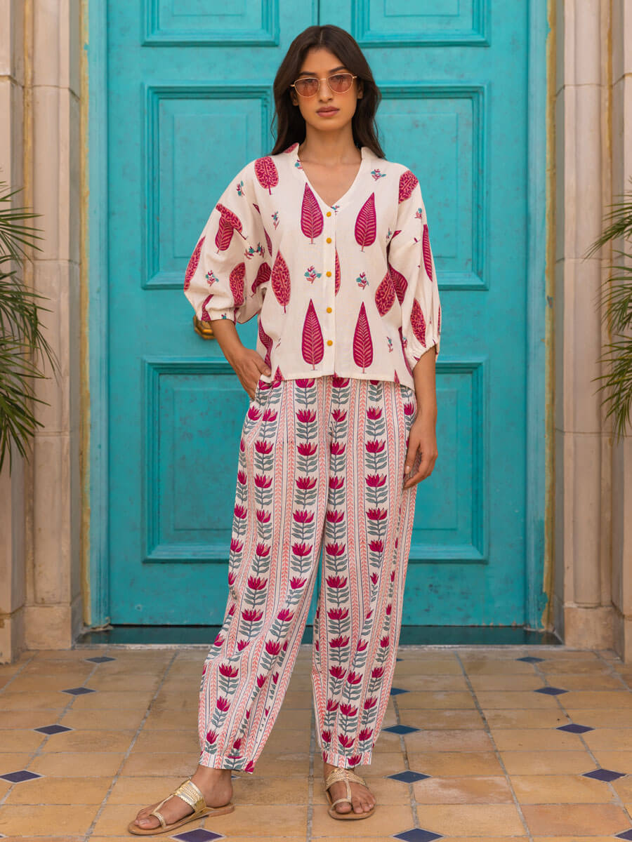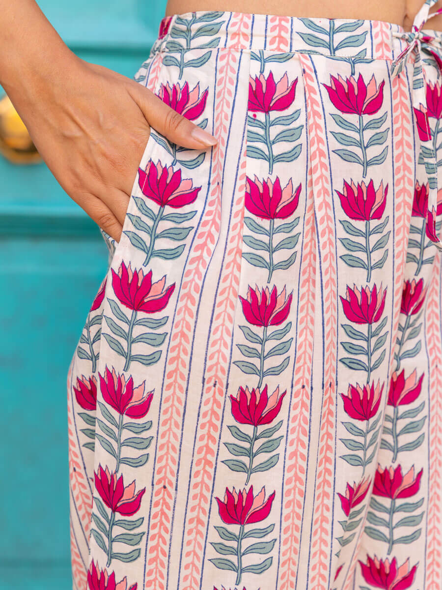 Pink Lotus Cotton Hand Block Printed Lantern Pants