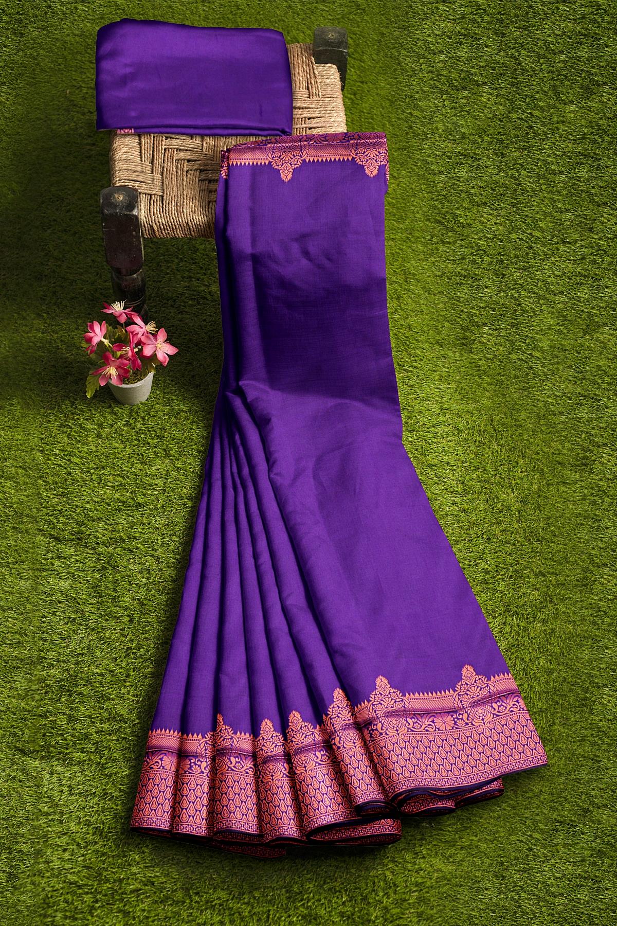 Latest PURPLE PLAIN SILK BLEND Saree with SELF ZARI border. This saree comes with PLAIN WITH BORDER SILK BLEND blouse.