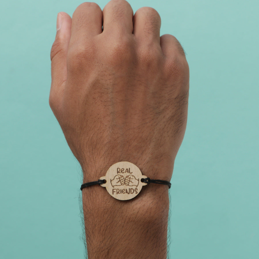 Curious about how to celebrate friendship day? Well, friendship bands are back in fashion! And your friends are gonna love this adorable friendship band designed with a wooden centerpiece that has ‘real friends’ engraved on it.