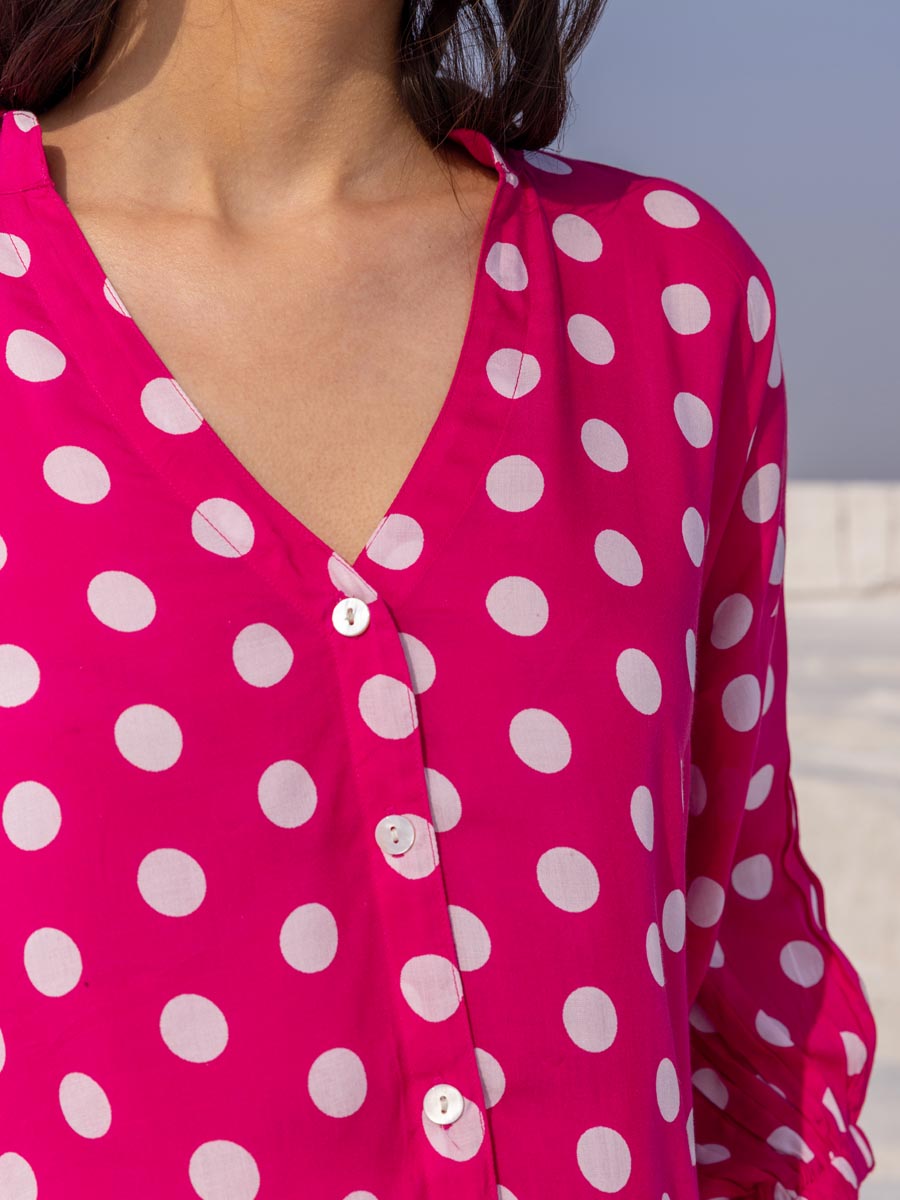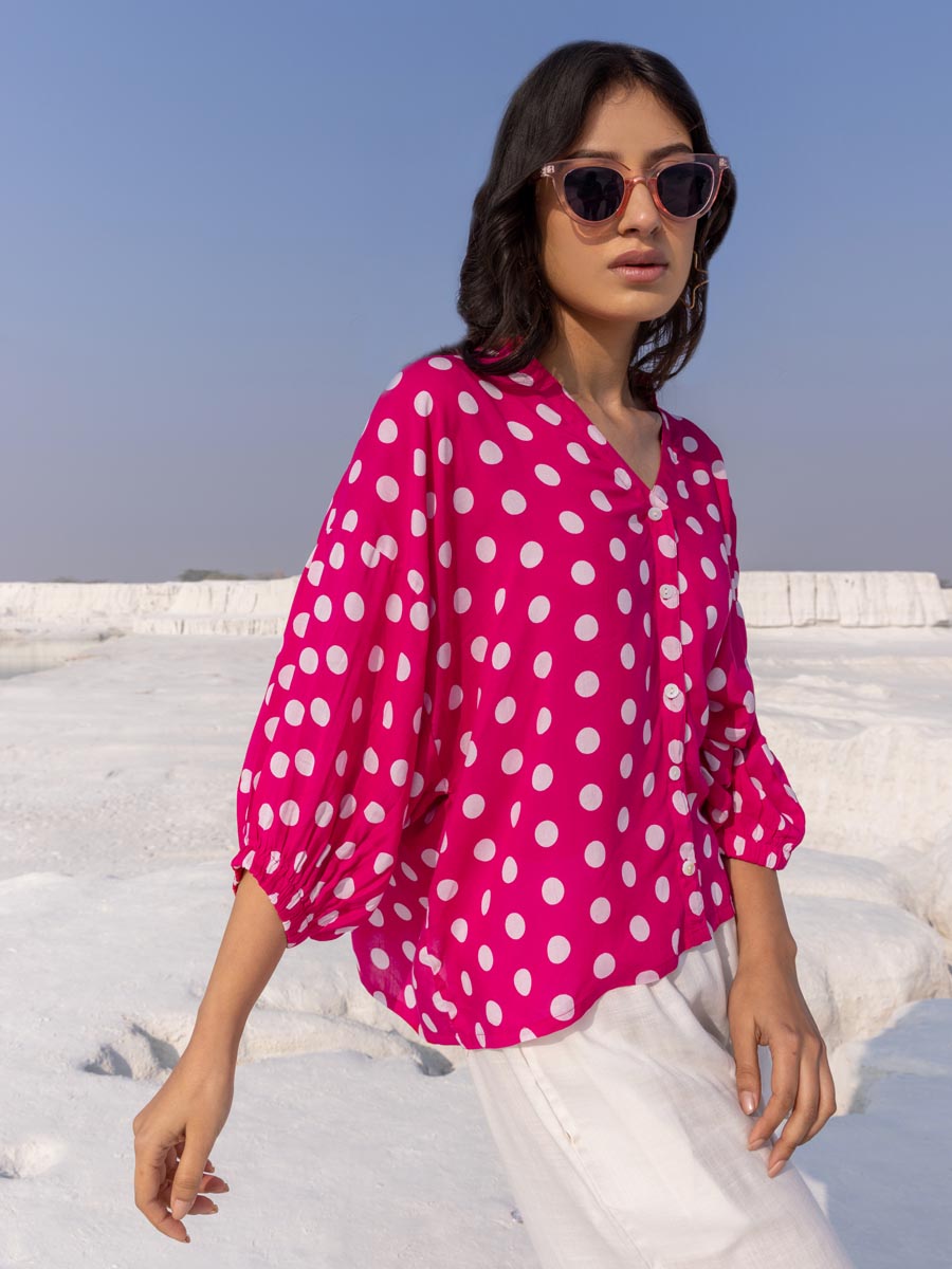 - A vibrant pink polka kaftan top
