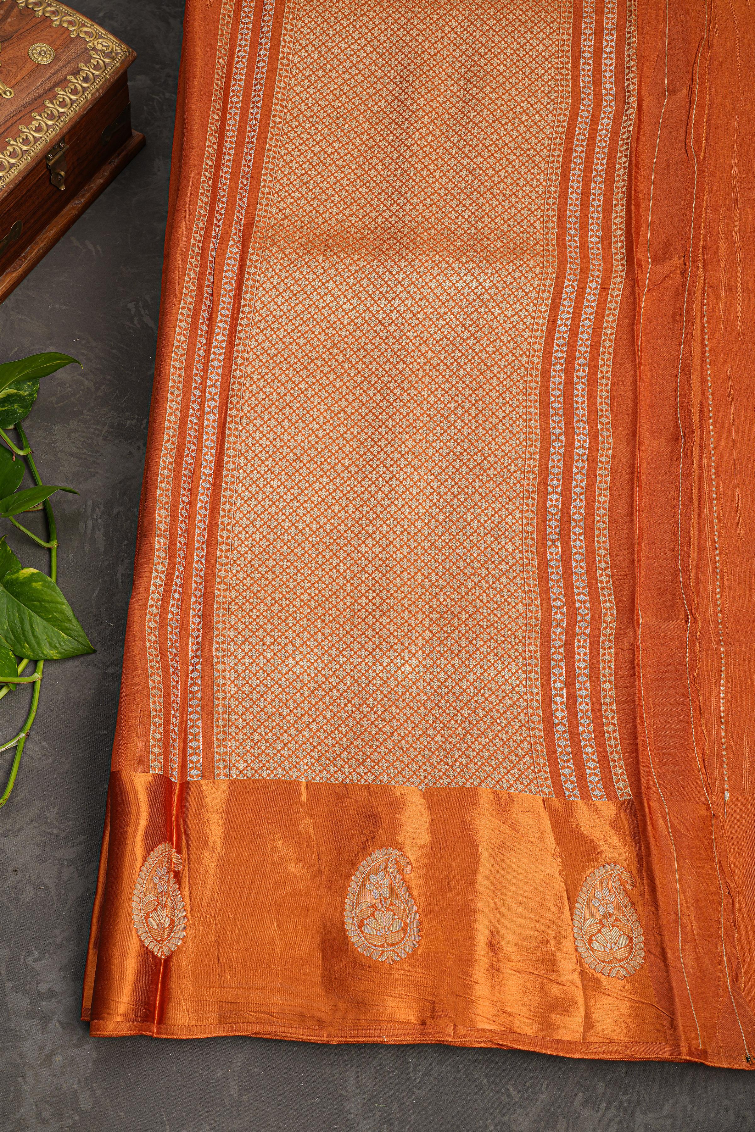 RUST and GOLD JAAL SILK Saree with BANARASI FANCY