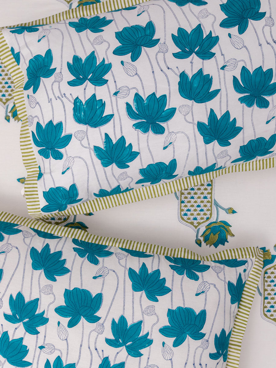 Padma or the Lotus is a central figure in many art forms including Pichhwai. It's a flower with meaning, beauty, and great cultural significance. The origin of the Lotus in Hindu mythology goes as far back as 'Samudra Manthan'. Its first association is with Lakshmi who also emerges from 'Samudra', hence, is referred to as Padmaja or Padmavati. This hand block printed home textiles collection is inspired by the beautiful lotus and other nature inspired elements.
