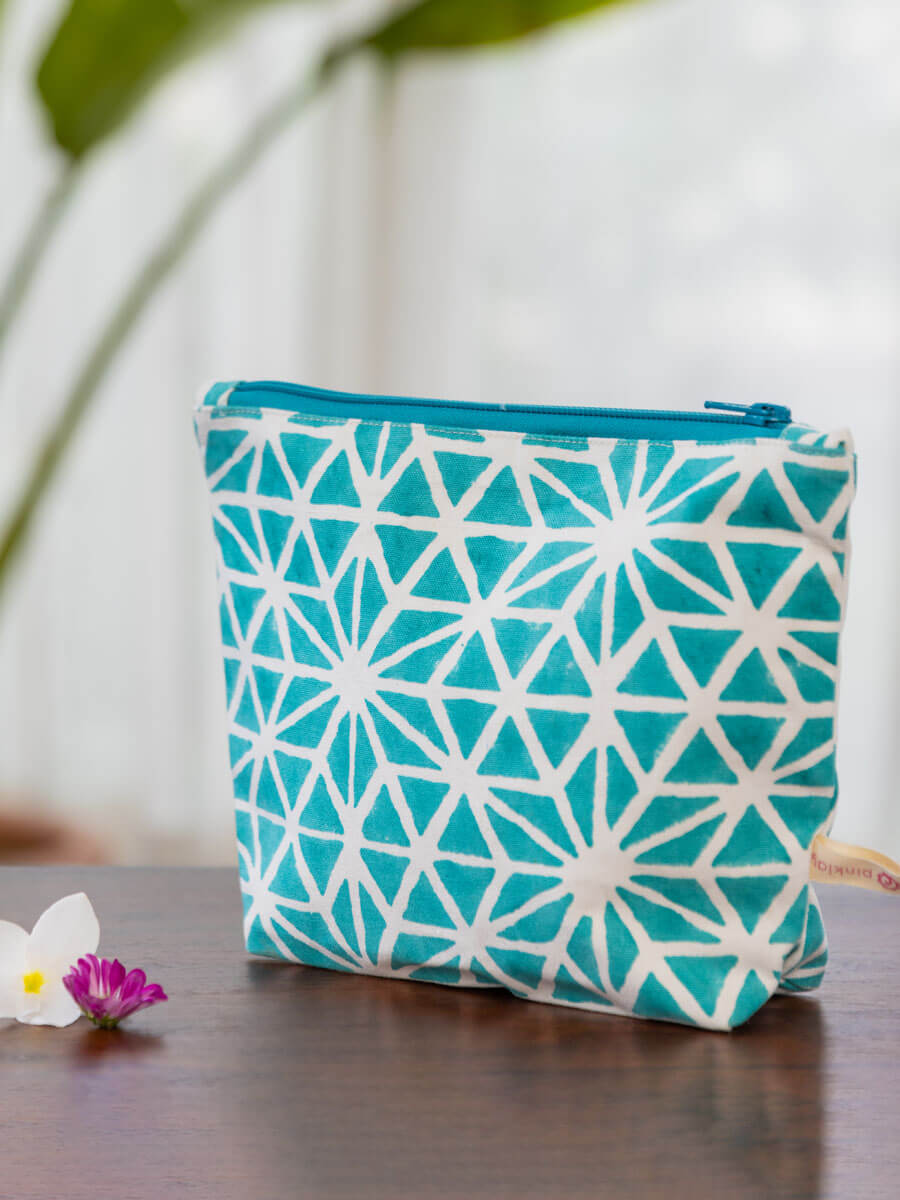 Set of 2 - Blue Star Block Printed Vanity Case and Travel Pouch