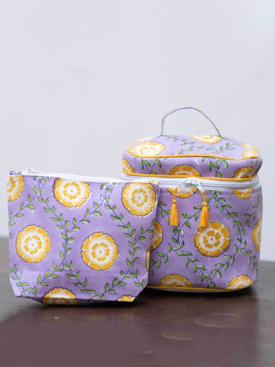 Set of 2 - Iris Block Printed Cotton Travel Set