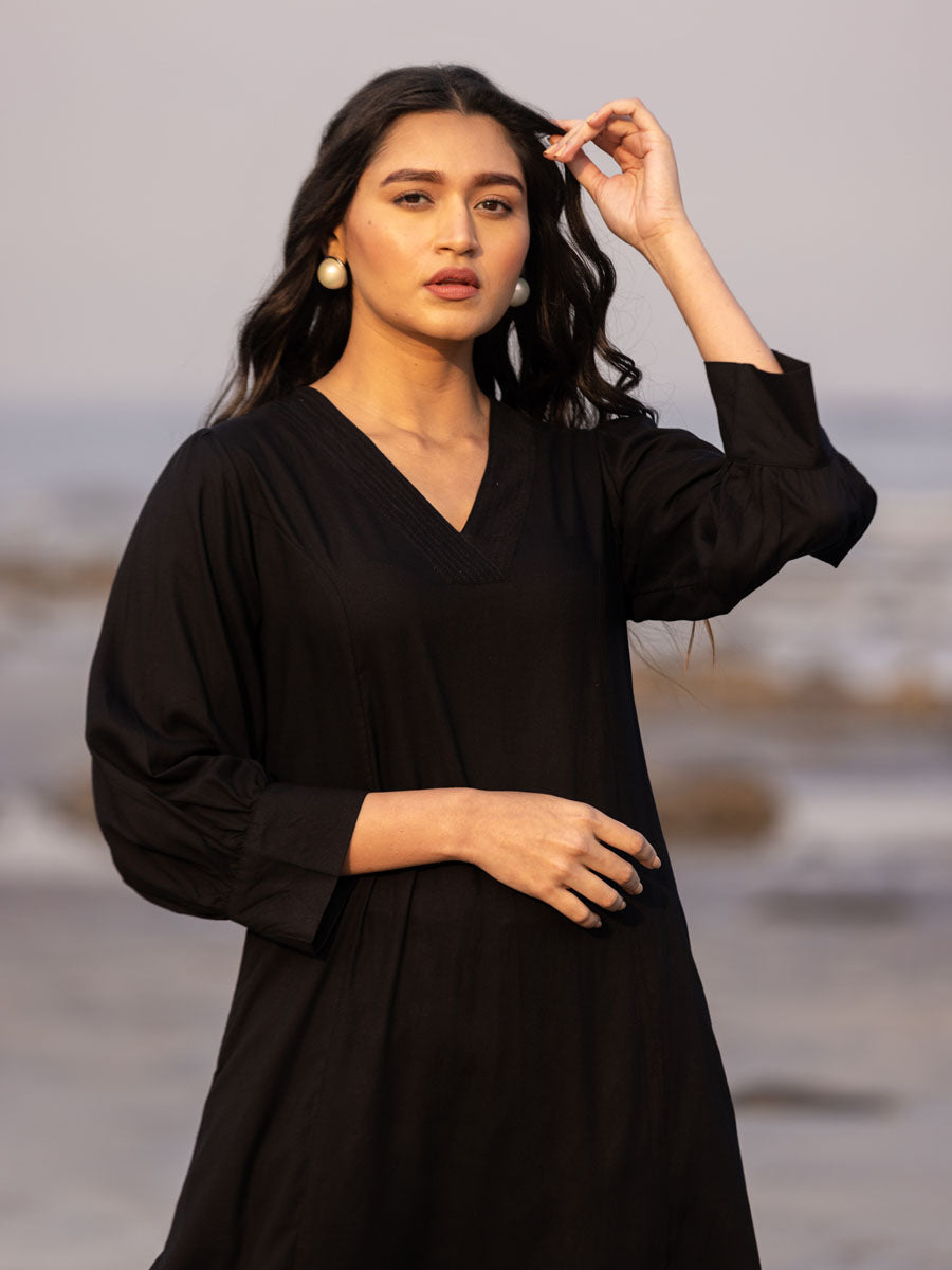 Set of 2 - Moh Long Black Kurta and Palazzo
