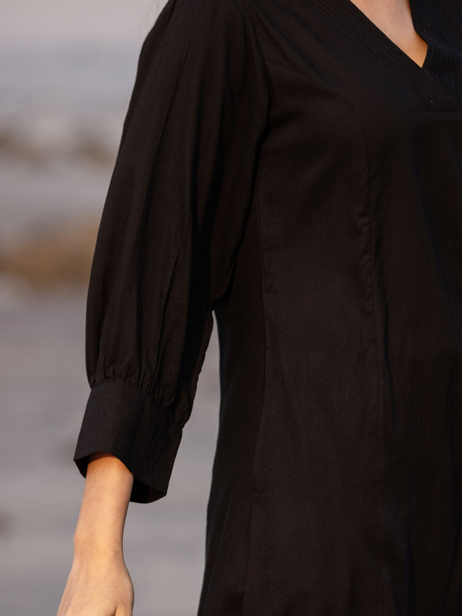 - Kurta: Slub kurta with a beautiful V-neck and bishop sleeves