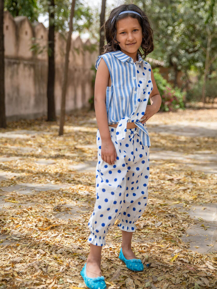 Set of 2 - Polka Dots Organic Cotton Block Printed Top & Pants Set