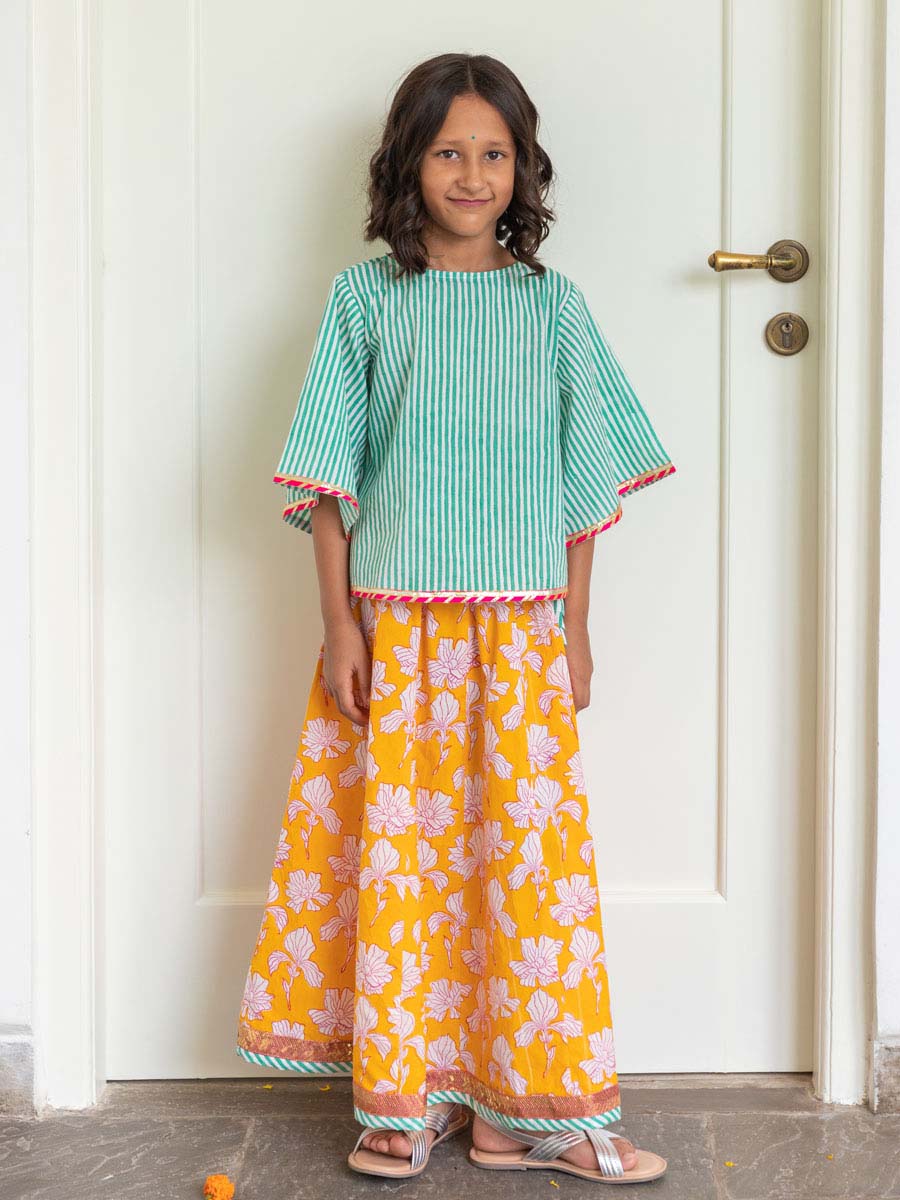 Set of 3 - Kashish Block Printed Cotton Lehanga