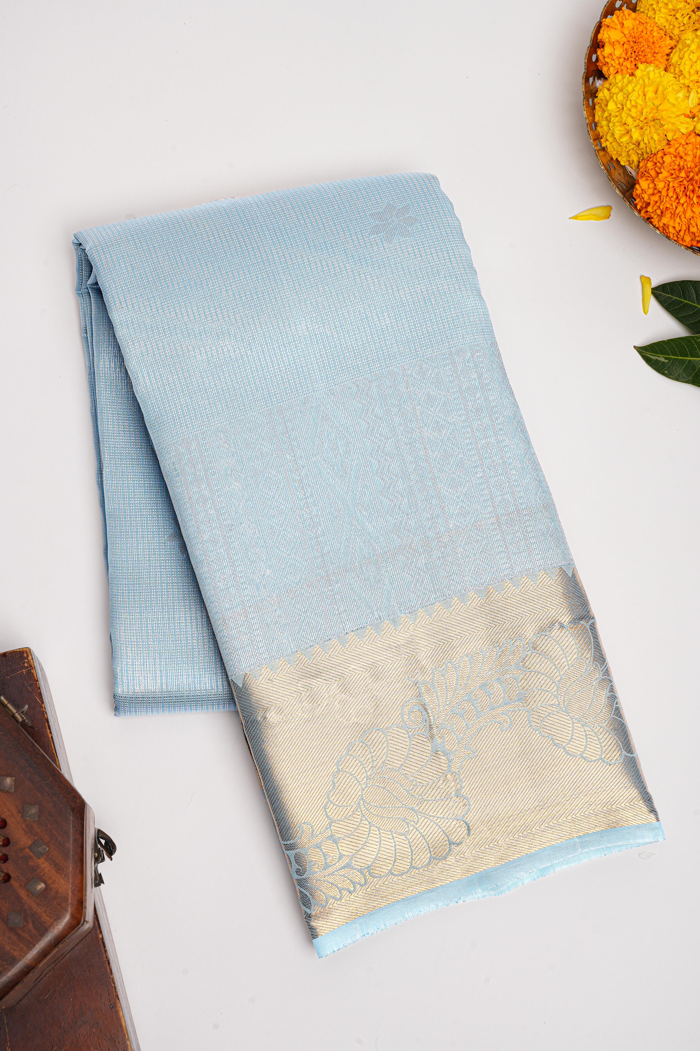 SKY BLUE and GOLD BUTTIS SILK BLEND Saree with SEMI PATTU