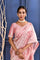 The soft pink tissue foil saree with embroidered border and stitched matching blouse for a classy shine with beautiful look.
