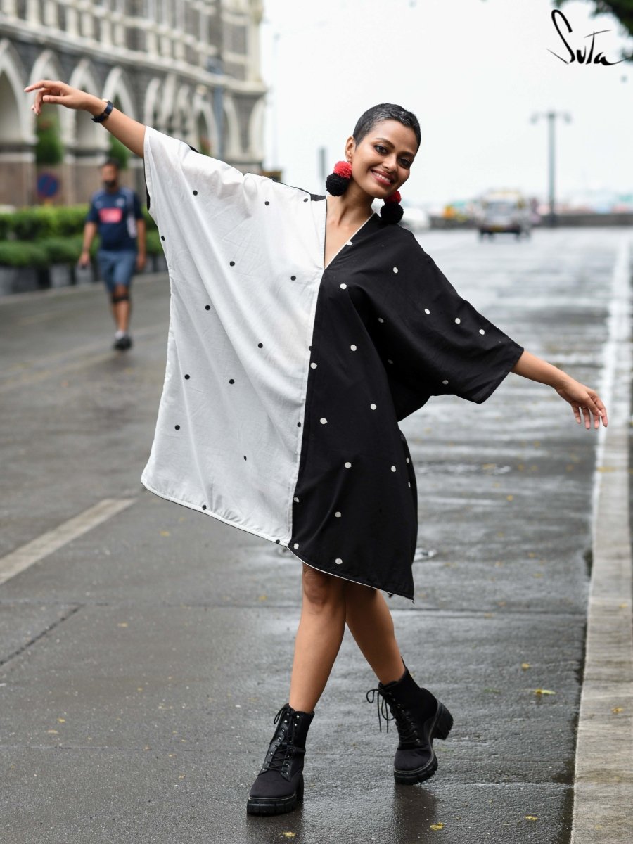 Be your own best friend, when you wear this gorgeous black and white dress thats made of the softest cotton.