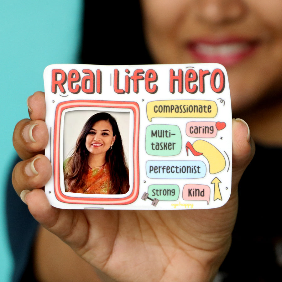 Real-Life Hero Magnet - Whether she is your mom, your sister, your wife, your friend, or just your colleague, we all know a woman who can just do it all. They are like real-life superheroes of our lives. Here's the cutest women's day surprise for her to let her know how often she inspires you and how much you admire her strength. This adorable fridge magnet is customised with 2 of her favourite pictures so that you can change them whenever you like.