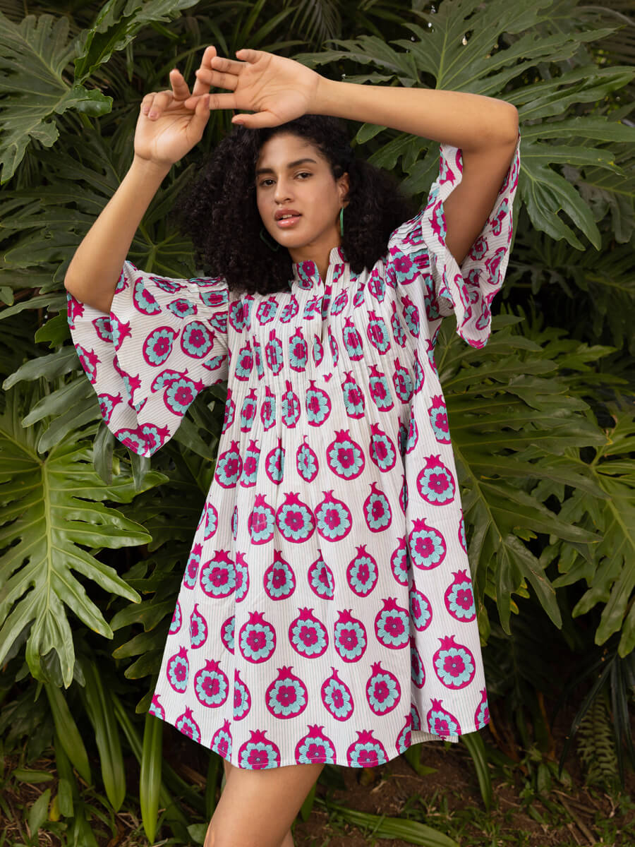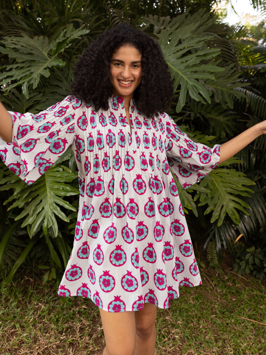 You love our pintuck dresses, we know that. We discontinued blue paradise recently and the hurt was real. But, we promised you something wonderful is in the making - here it is. Promise delivered! Presenting Tara, handblock printed Pinklay's iconic pintuck shortie!
